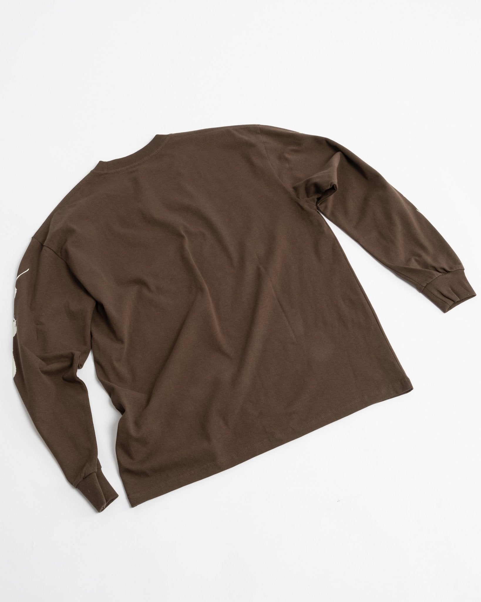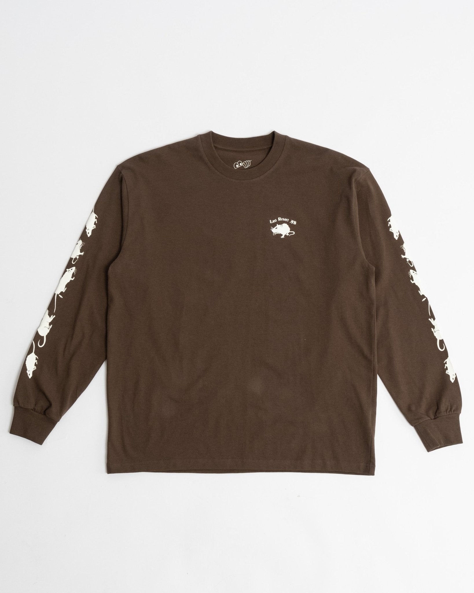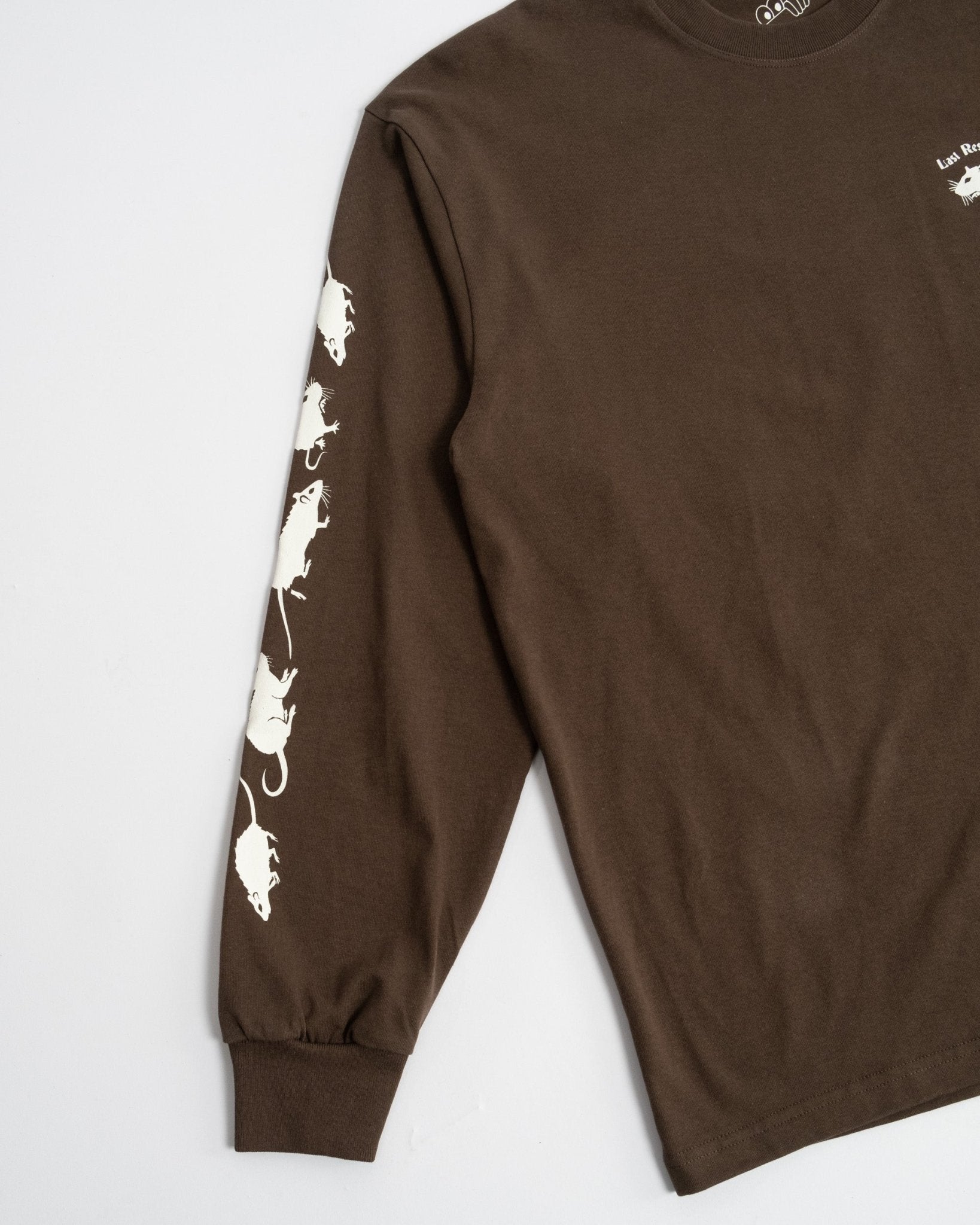 Rat Race LS Tee Schokoladenbraun von Last Resort AB. Langärmliges T-Shirt in regulärer Passform, hergestellt aus einem 210 g/m² Jersey-Stoff. Bedruckte Arme und dezentes Brustlogo. 100% Baumwolle. Hergestellt in Portugal.