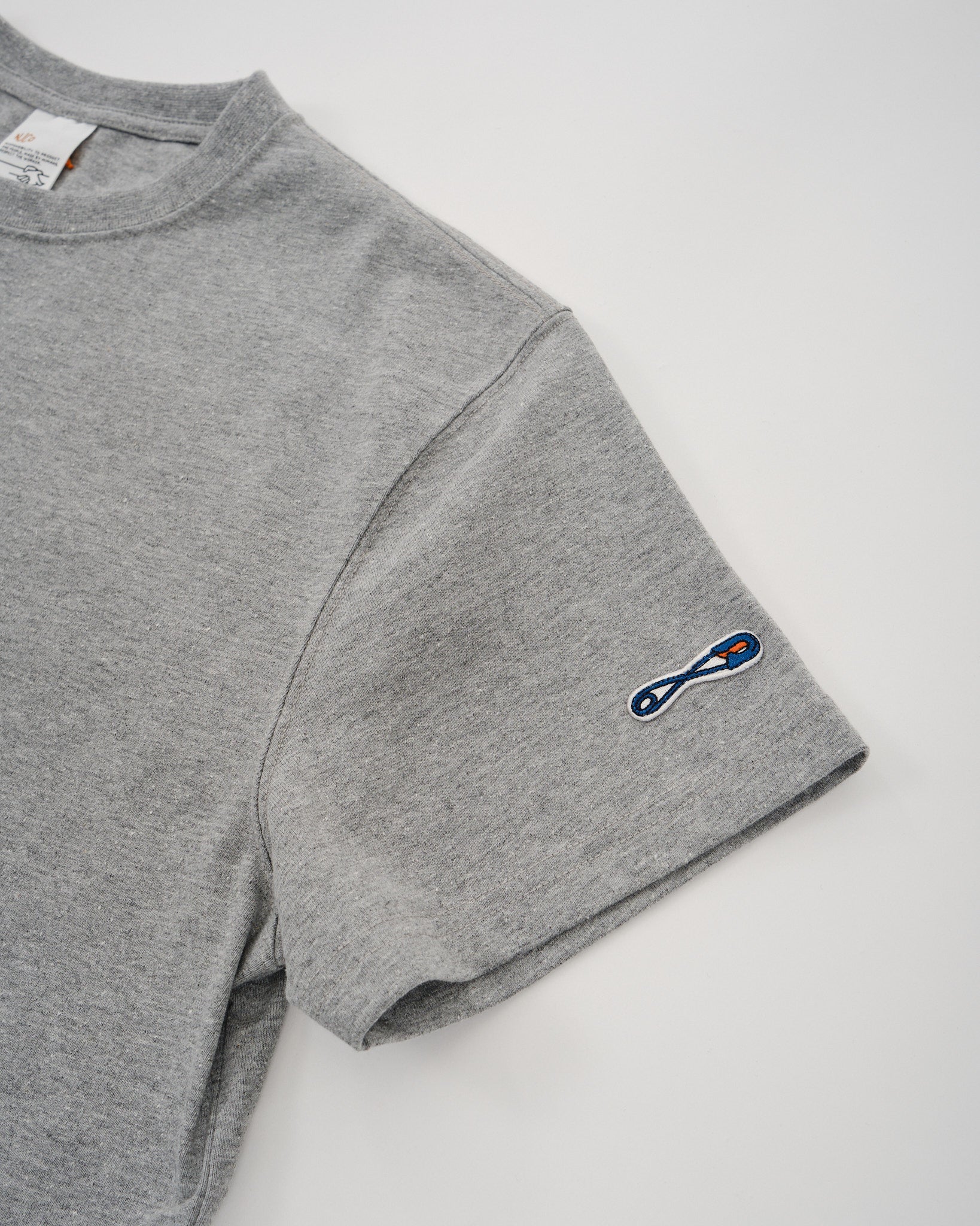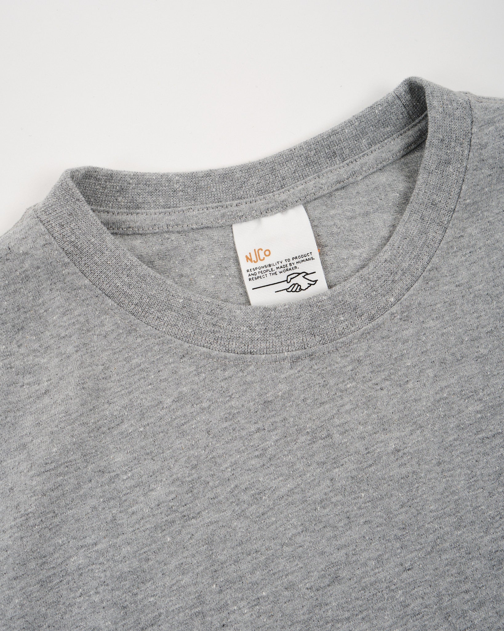 Vorstellung des Nudie Jeans Rebirth Tee in Pin Grau Melange. Eine Verkörperung nachhaltiger Mode. Dieses T-Shirt mit Rundhalsausschnitt wird aus 100% Materialien hergestellt, die ungenutzte Baumwolle und Polyester nach Verbrauch kombinieren. Das Ergebnis? Ein leichter und bequemer Jersey-Stoff mit einem texturierten Effekt. Es zeigt das Wiedergeburtssymbol, eine aufwendig gestickte verdrehte Sicherheitsnadel, die sich als einzigartiger Aufnäher auf dem linken Ärmel befindet. Dieses passende T-Shirt wird komplett mit einem speziellen Wiedergeburtshangtag geliefert, der als Erinnerung dient, unseren Ansatz zur Modeverschwendung zu überdenken. Lassen Sie Ihren persönlichen Stil nicht nur in der Mode ein Statement setzen, sondern tragen Sie auch zur Nachhaltigkeit bei!