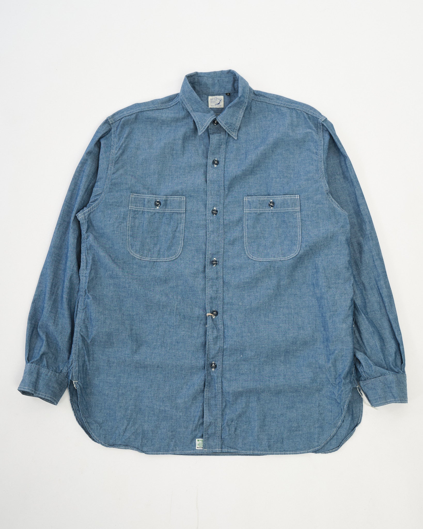 Das orSlow Relax Fit Chambray Arbeitshemd in Chambray ist eine zeitgenössische Neuinterpretation klassischer Arbeitskleidung, sorgfältig gefertigt, um sowohl Komfort als auch Haltbarkeit zu bieten. Hergestellt aus hochwertigem 100% Baumwoll-Chambray-Stoff, bietet dieses Hemd ein weiches, atmungsaktives Gefühl und ist somit ideal für das ganze Jahr über tragbar.
