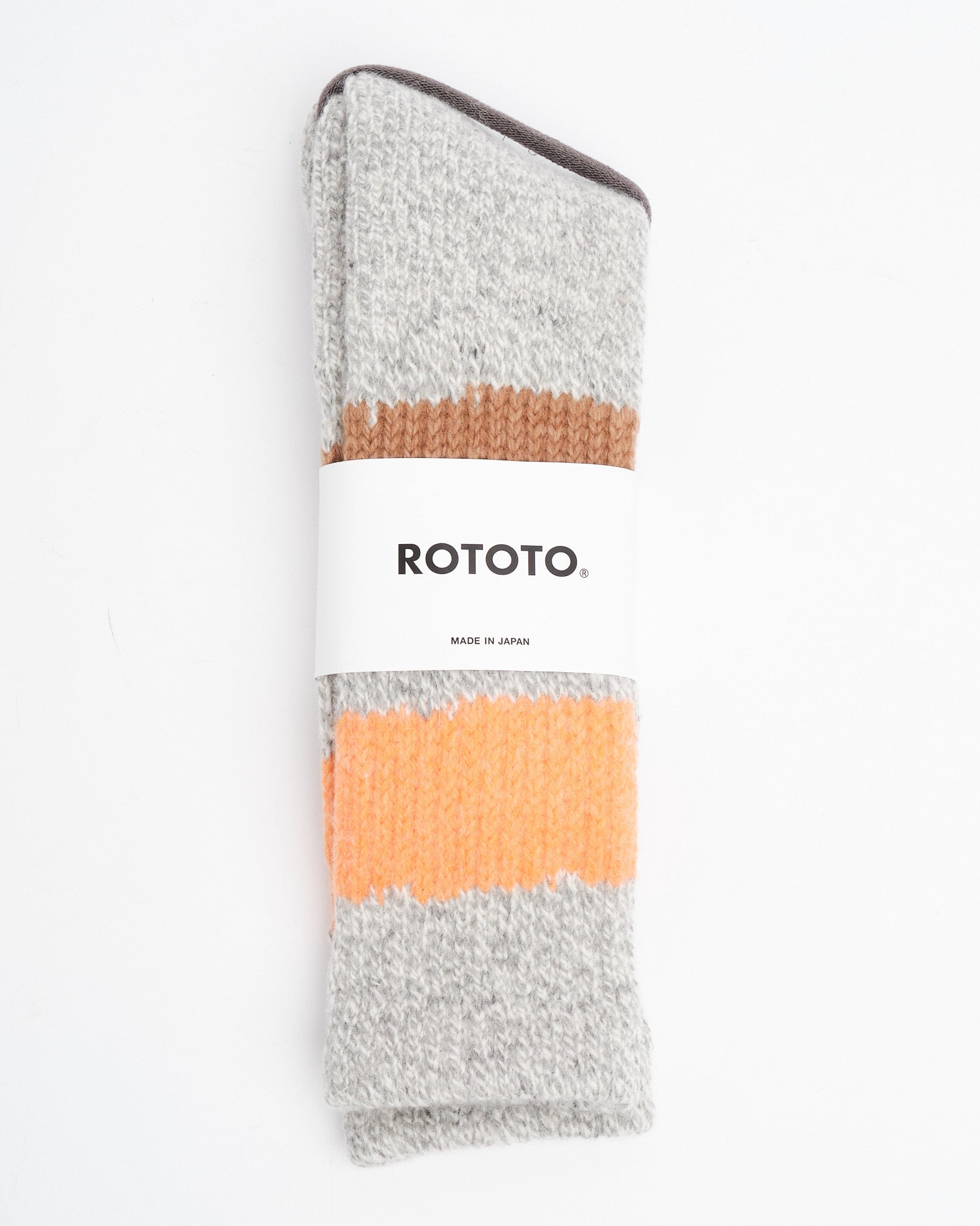 RoToTo kombiniert jahrhundertealte Handwerkskunst und Nachhaltigkeit mit ihren Retro Winter Outdoor Socken, inspiriert von ikonischen Outdoor-Winterstilen. Perfekt zugeschnitten für Ski- und Bergwanderabenteuer, versprechen sie Wärme in kalten Zeiten. Hergestellt in Japan aus einem kuscheligen Wollmischgarn, sind diese grau und weißen Socken eine Hommage an die Vintage-Ästhetik. Ihr gestreiftes Design fügt nicht nur einen Retro-Charme hinzu, sondern lädt dazu ein, die Natur zu genießen, egal welche Saison. Mit nur noch wenigen Handwerkern, die die für ihre Herstellung verwendete Vintage-Strickmaschine bedienen können, ist jedes Paar ein Zeugnis authentischer Handwerkskunst.