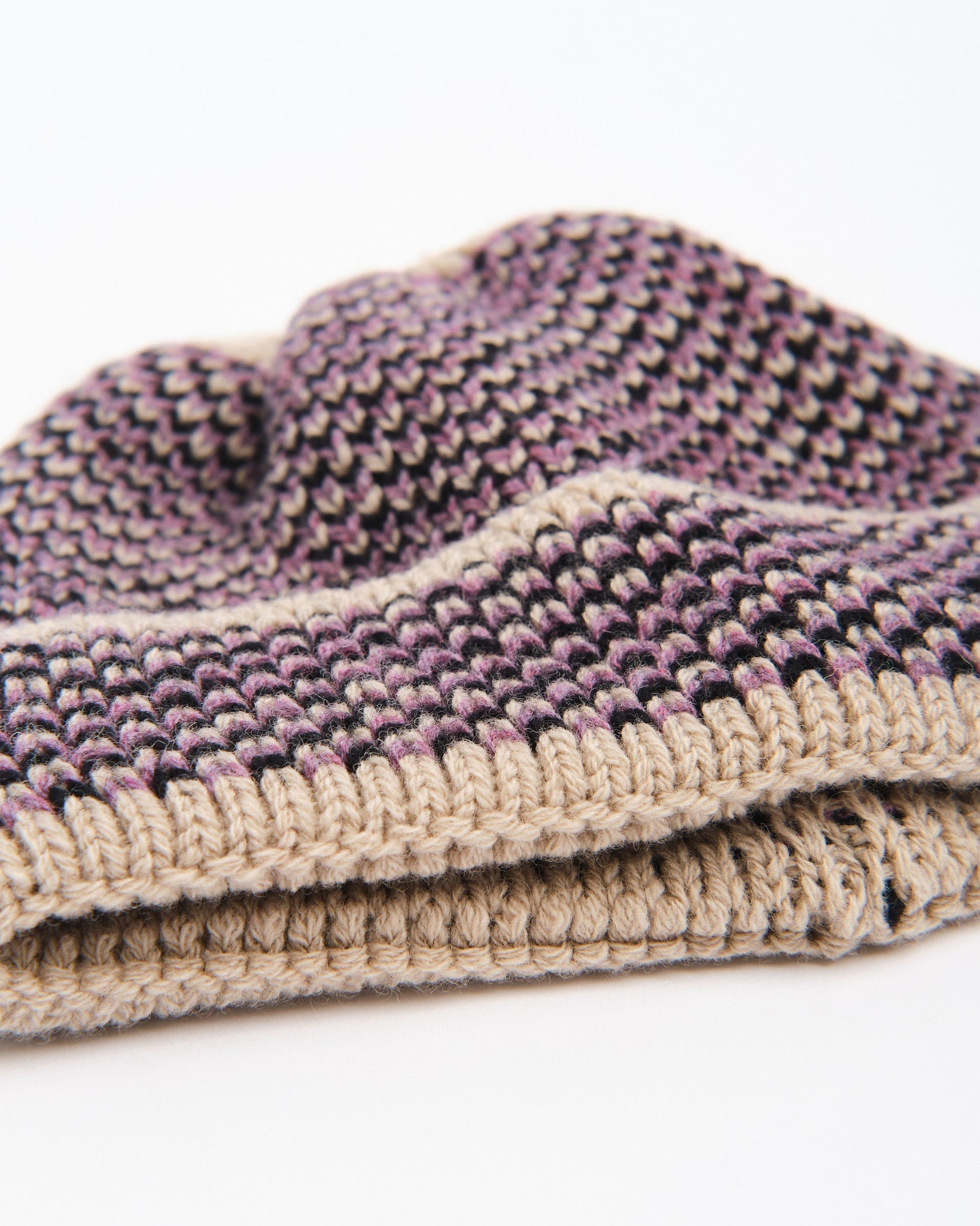 The Reverse Geo Beanie in Beige by Found Feather blends neutral tones with bold texture. Crafted in Japan from washable Italian Donegal wool, this beanie features a reverse jacquard knit pattern that adds tactile contrast and visual rhythm. With its soft stretch yarn, single-panel construction, and regular 7 cm brim, it’s built for comfort and structure in equal measure. The woven label and QR-coded care tag round off a piece that’s thoughtfully designed, down to the last stitch.