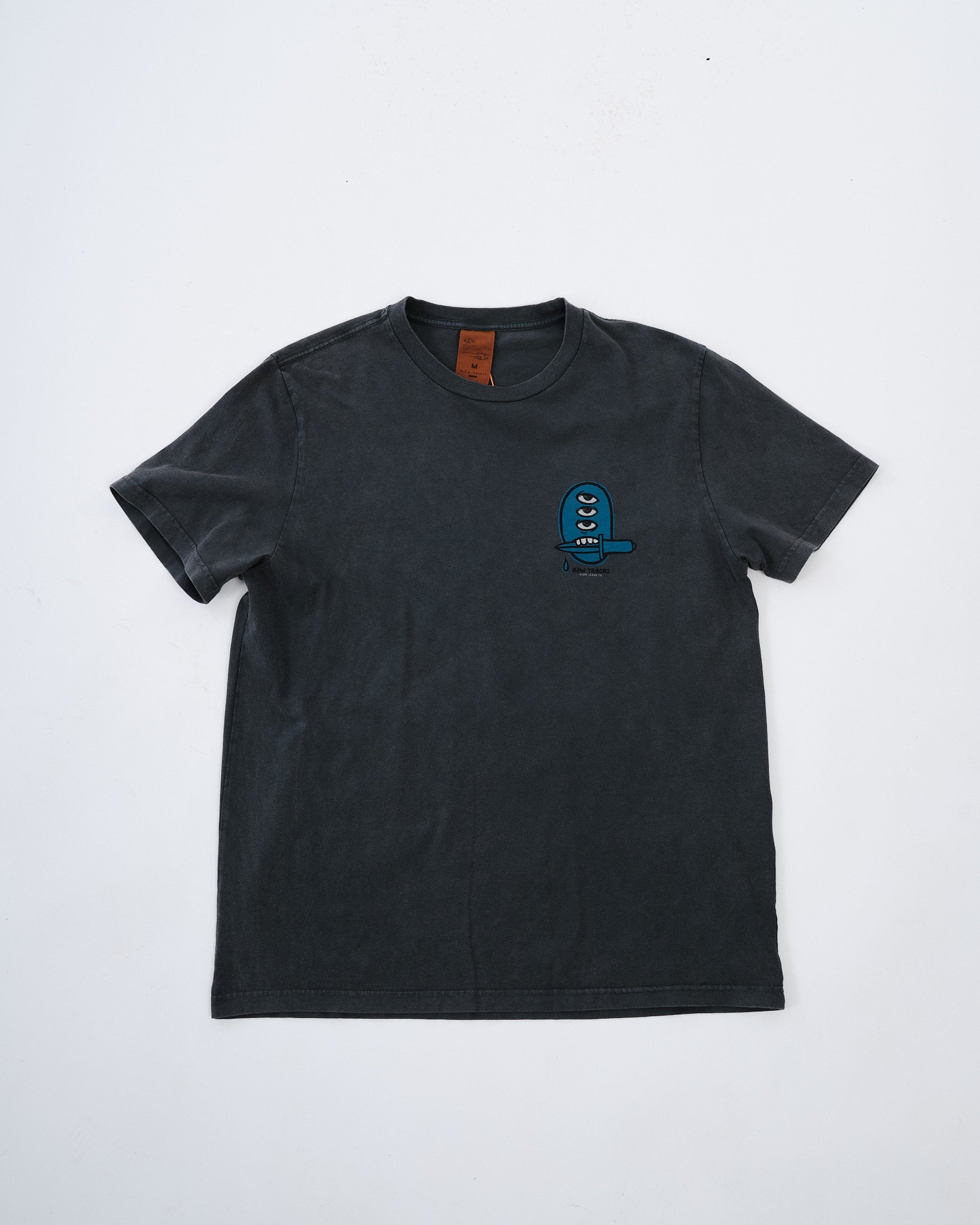 Der verblasste Anthrazitton wird durch Färbung des Kleidungsstücks und eine Auswaschung erreicht, was dem T-Shirt ein natürlich getragenes Aussehen verleiht, das perfekt zu Denim passt. Wenn Sie es tragen und waschen, wird die Farbe weiterhin evolvieren, was seine Vintage-Ästhetik verstärkt. Abgerundet mit einem Brustdruck, bietet dieses T-Shirt mühelosen Stil mit einem authentischen, gut getragenen Charme.