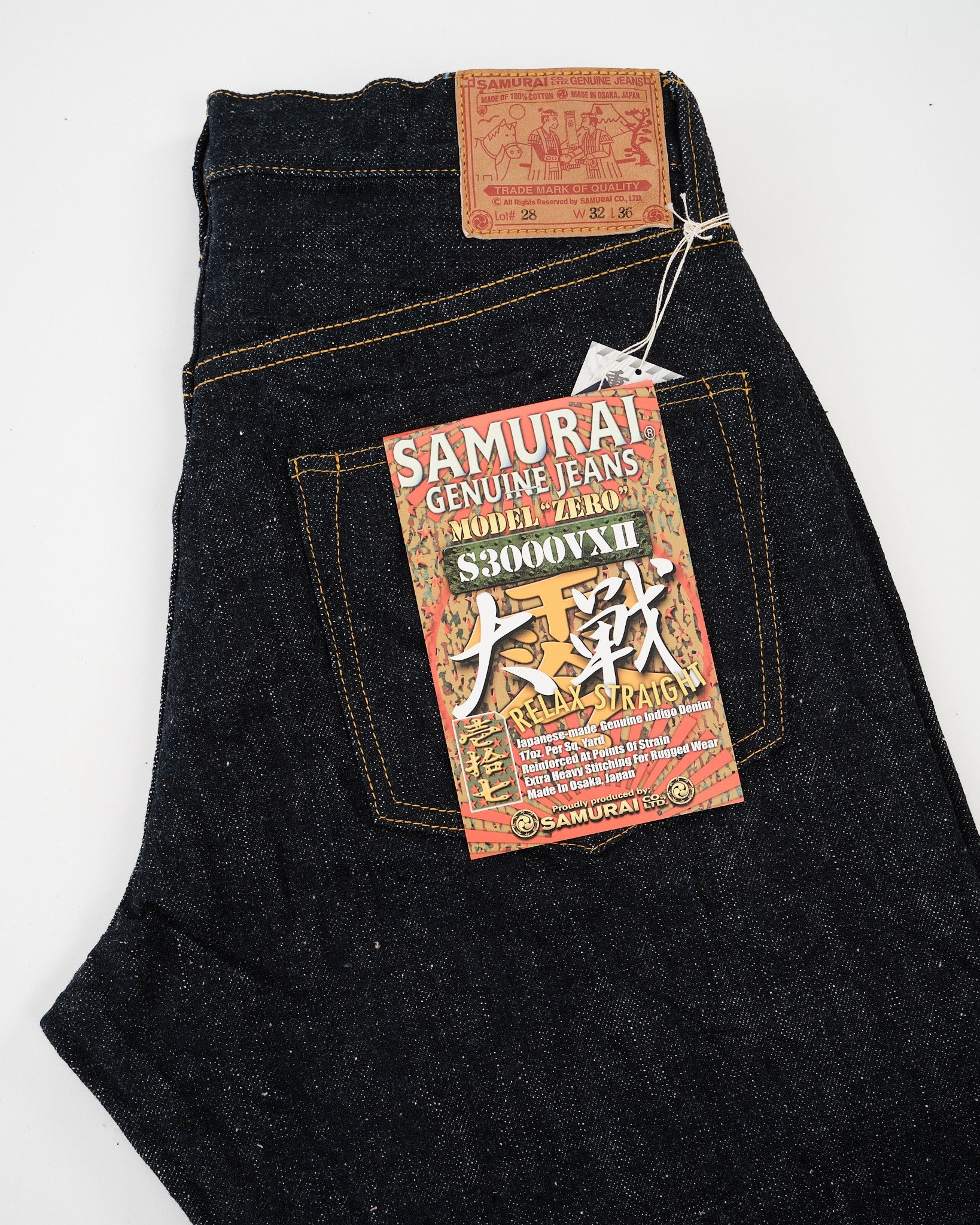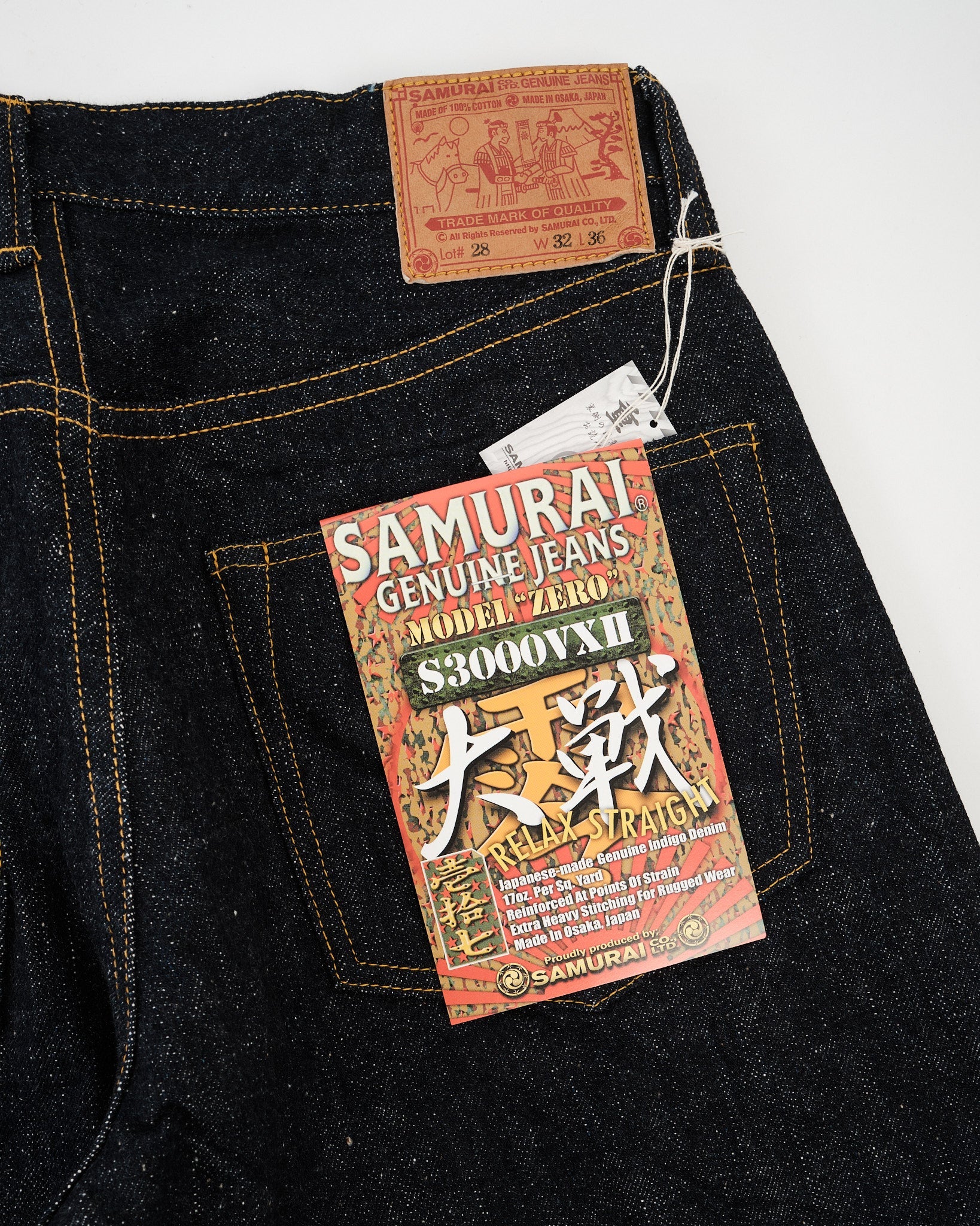 • 17oz Bushido selvedge denim woven on shuttle looms