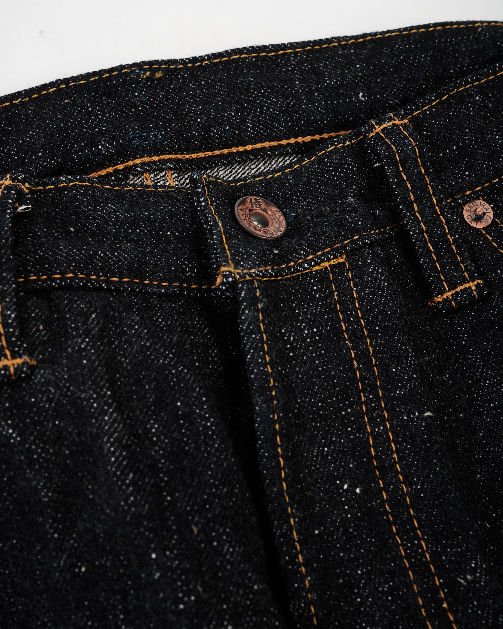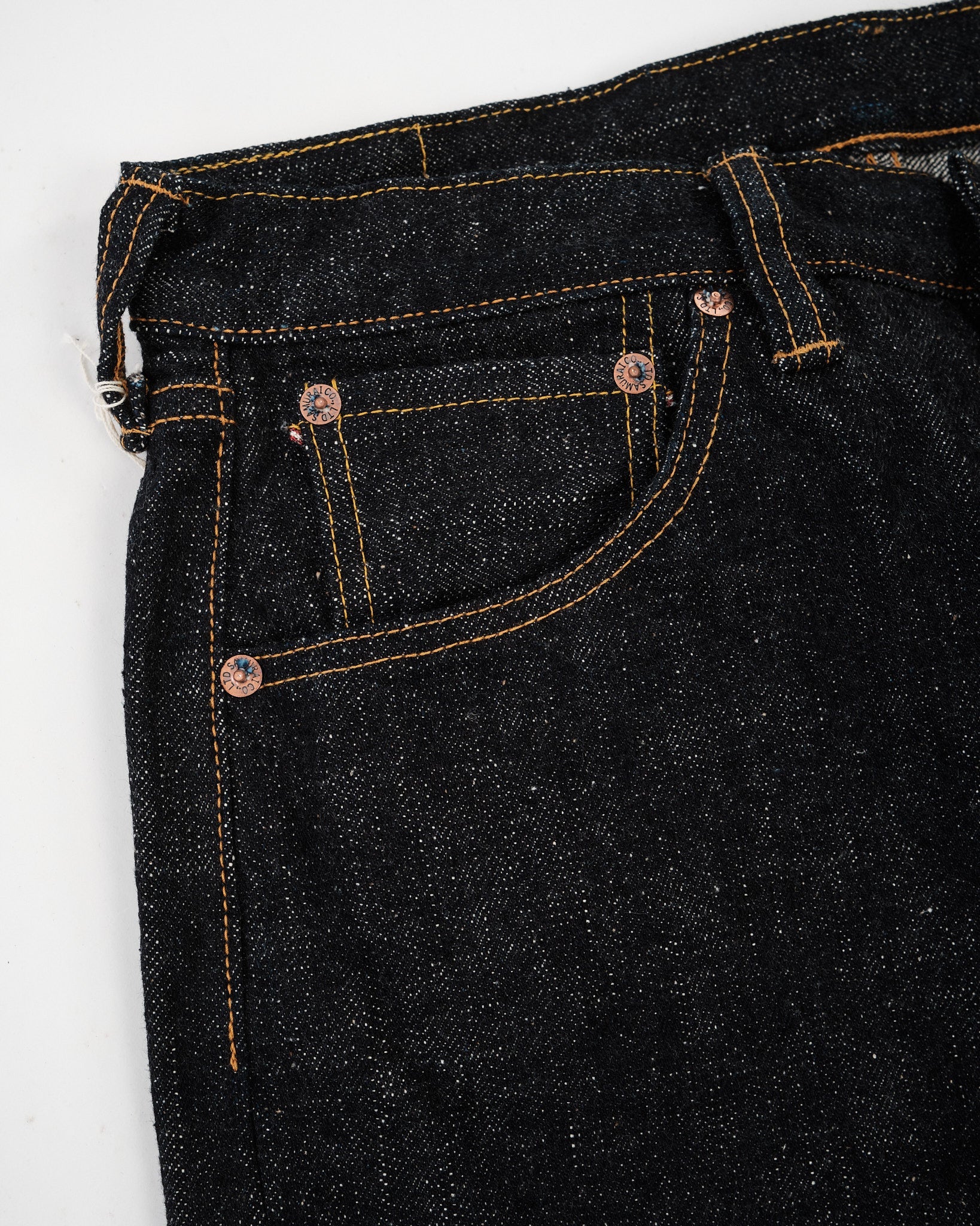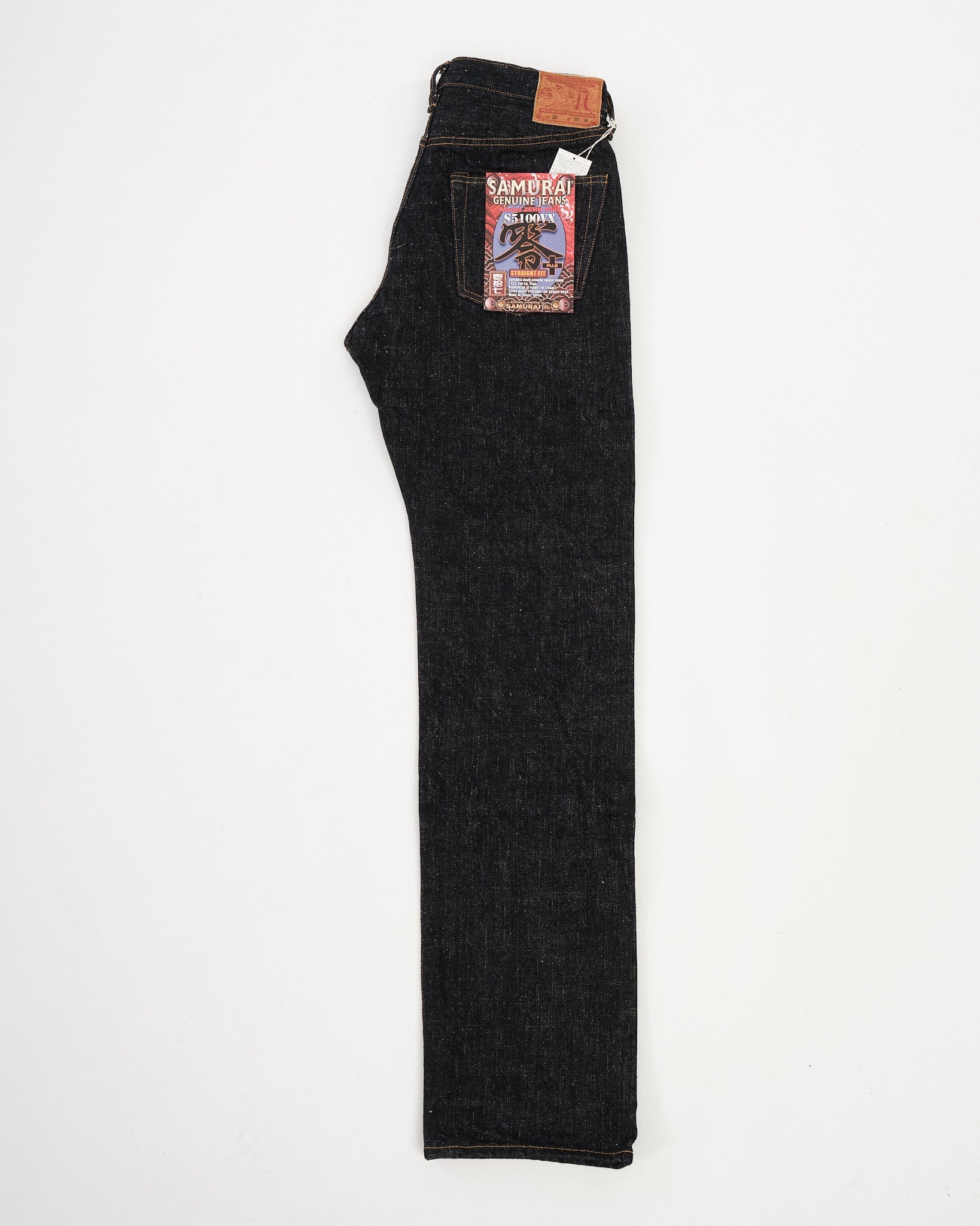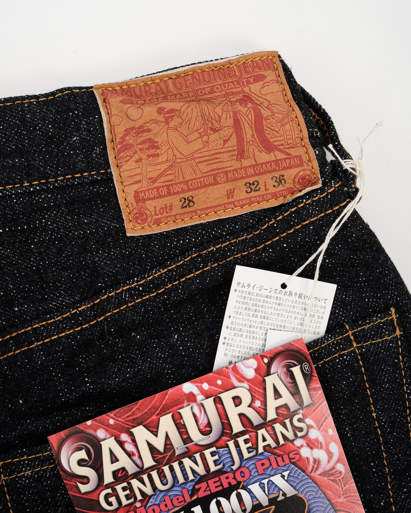 Cut from 17oz Zero+ selvedge denim, this fabric carries Samurai’s trademark slubby texture and heavyweight feel, ready to evolve into powerful fades. Details are steeped in history: the buttons are newly developed to mimic the ancient Japanese “shakudo” alloy, finished in black and designed to patinate beautifully with wear. Copper Samurai rivets reinforce the build, while the pocket bags are made from rugged 8oz slubby denim, tougher than conventional cloth.