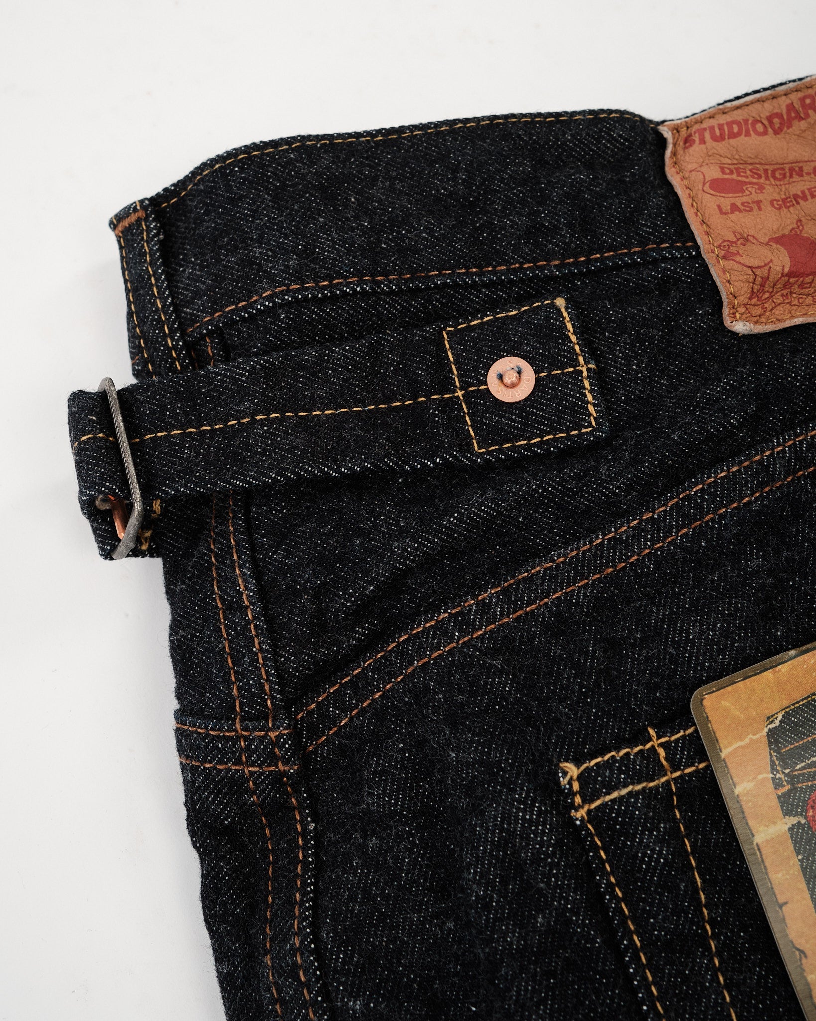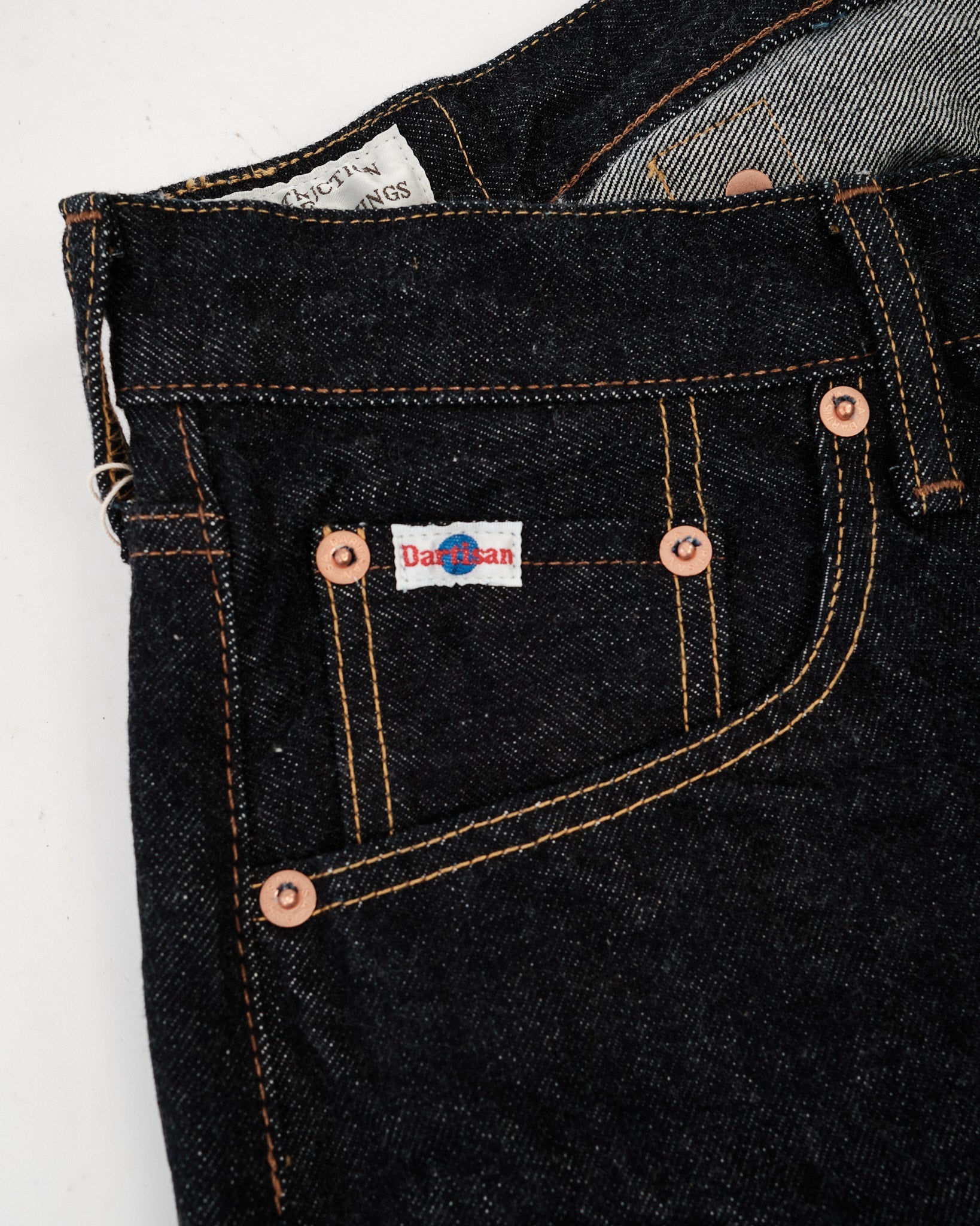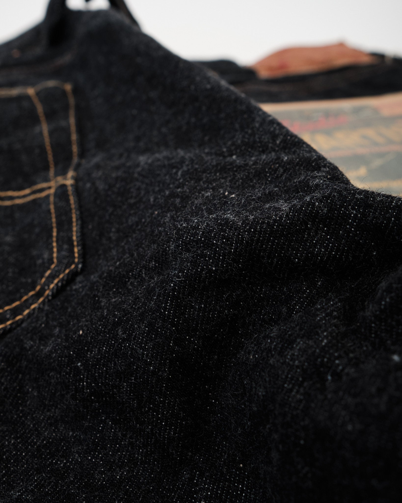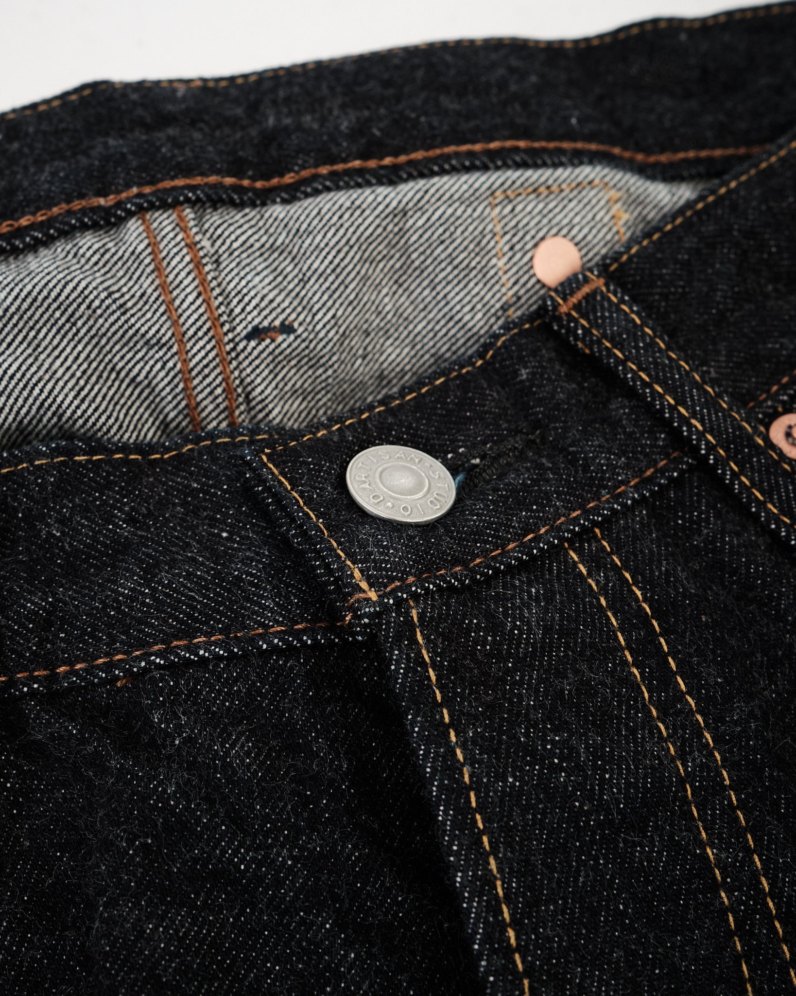Die tiefe Indigofärbung sorgt für eine reiche Farbe, die allmählich ausgeprägte Whiskers und Falten durch das Tragen offenbart. Aufgrund des Fehlens moderner schrumpffester Behandlungen ist nach dem Waschen mit natürlichem Schrumpfen und Verdrehen zu rechnen, was die Charakteristika von Jeans aus den 1950er Jahren nachahmt.