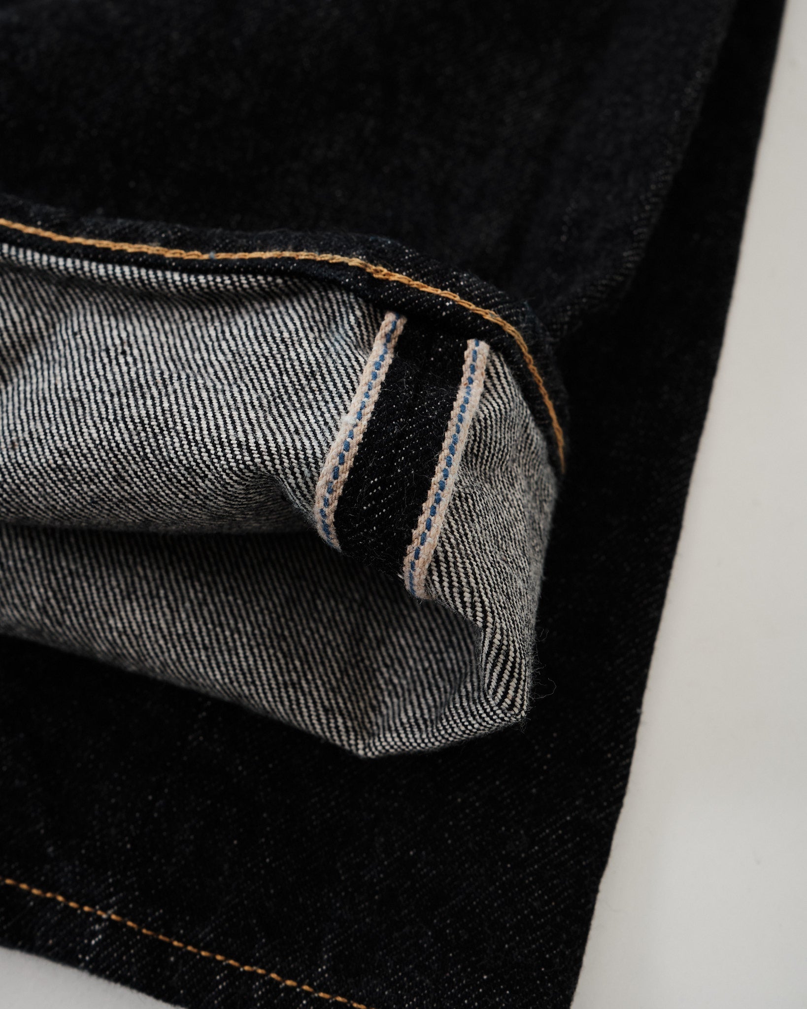 - 15oz Unsanforisiertes Selvedge-Denim: Robuster Stoff, gewebt auf traditionellen Shuttle-Webstühlen.