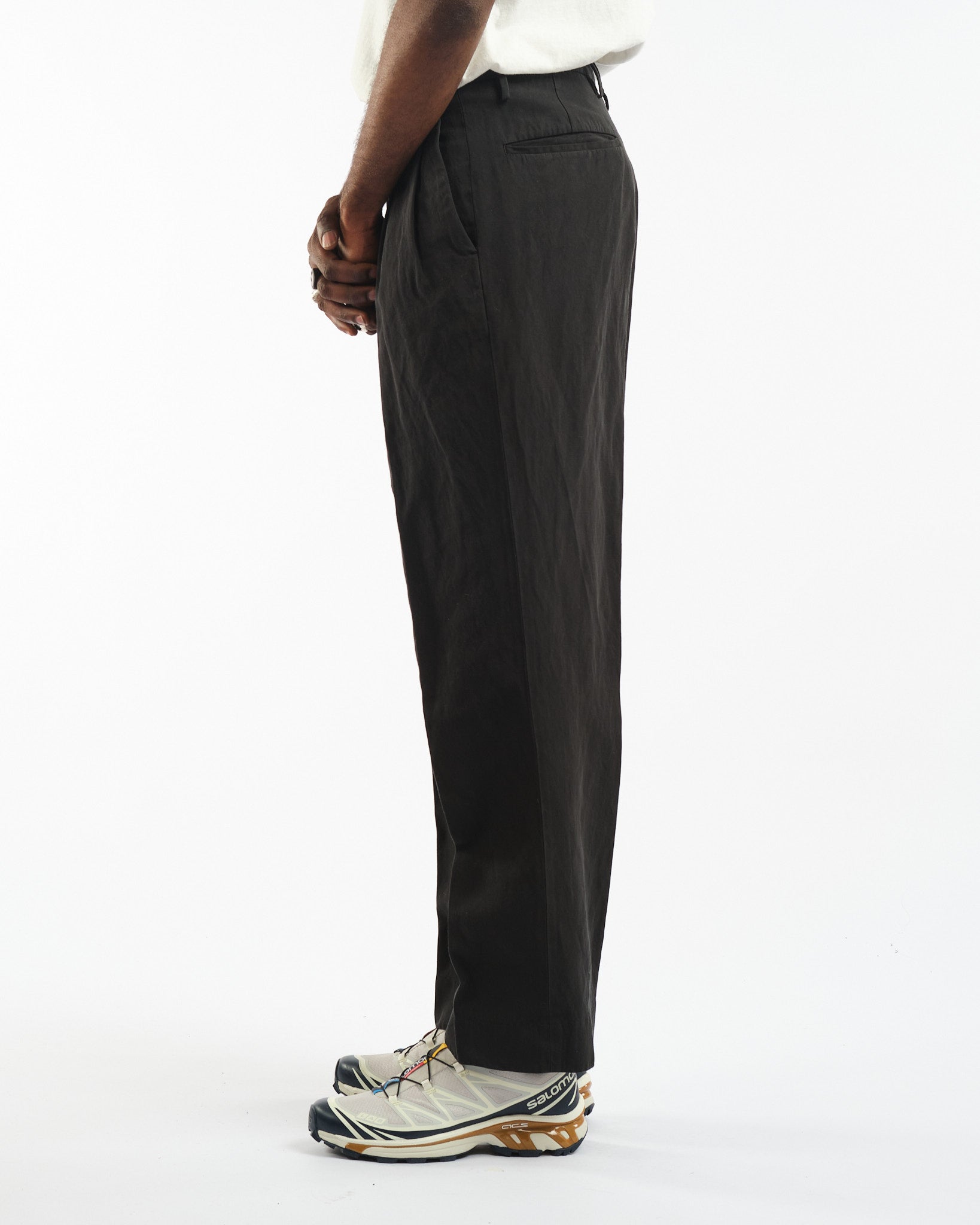 Suchen Sie nach einem Paar Hosen, die sowohl cool als auch unauffällig sind? Suchen Sie nicht weiter als die Shoecut-Hosen in Tintenschwarz von der japanischen Marke Kaptain Sunshine. Hergestellt aus einer Mischung aus ägyptischer superlanger Baumwolle FINX und belgischem Leinen, bieten diese Hosen eine einzigartige verwobene Textur, die eine perfekte Balance zwischen Stil und Komfort bietet. Das trockene Touch-Finish verleiht ein luxuriöses Gefühl, während die Produktfärbung eine reiche, tiefe Farbe erzeugt. Mit einer Mischung aus 70 % Baumwolle und 30 % Leinen sind diese Hosen sowohl atmungsaktiv als auch haltbar und somit eine perfekte Wahl für jeden Anlass. Fügen Sie Ihrem Kleiderschrank einen Hauch von japanischem Handwerk hinzu und halten Sie es cool mit diesen unauffälligen Hosen!