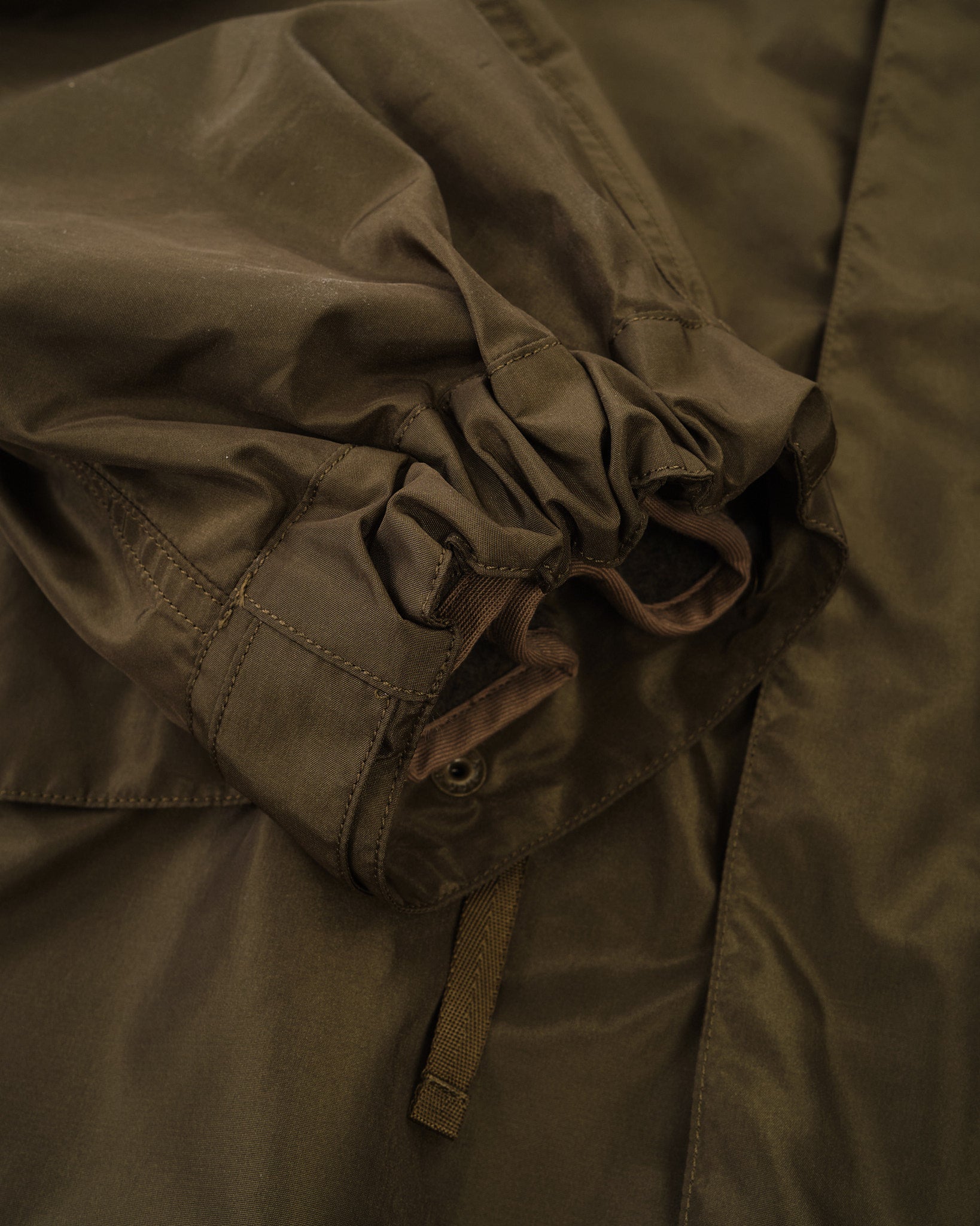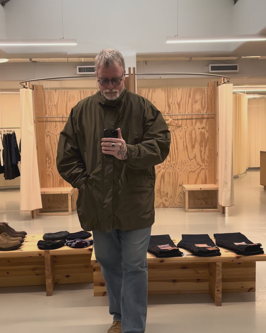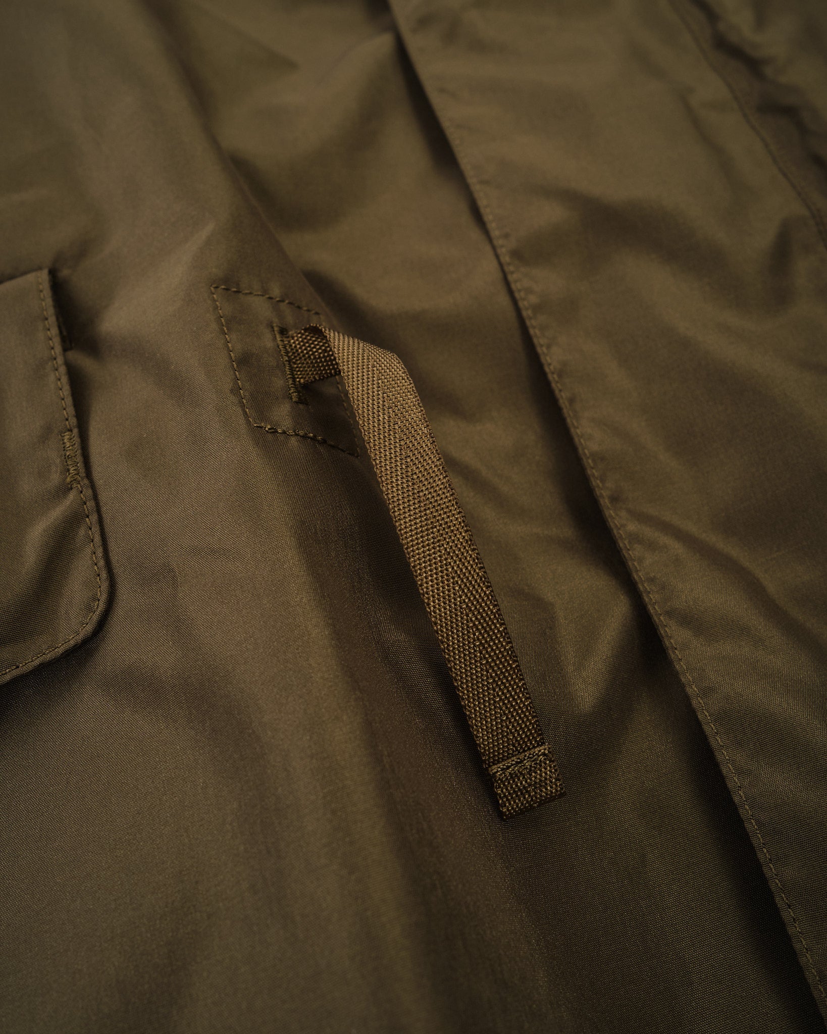 Der KAPTAIN SUNSHINE Silk Poly Mil Coat (KS25FJK17) bietet eine perfekte Balance aus Luxus und Haltbarkeit. Hergestellt aus einem ultra-hochdichten Seiden-Polyester-Gewebe, ist dieser Mantel aus hochwertigem Seidenfilamentgarn und Polyester-Doppelgarn gewebt. Der Prozess des Verdrehens mehrerer feiner Seidenfäden verleiht einen schönen, luxuriösen Glanz, während er eine außergewöhnliche Festigkeit und Struktur beibehält.