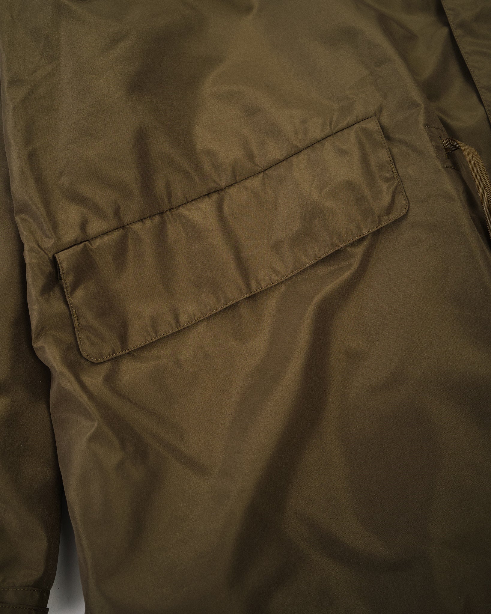 Der Mantel ist mit einer entspannten Passform entworfen, was ihn perfekt für das Schichten in den kälteren Monaten macht, während er gleichzeitig eine stilvolle, zeitgenössische Silhouette bietet. Er verfügt auch über ein abnehmbares Wollfutter, was eine einfache Anpassung der Wärme basierend auf den Wetterbedingungen ermöglicht. Dieses durchdachte Design macht den Silk Poly Mil Coat sowohl funktional als auch anspruchsvoll.