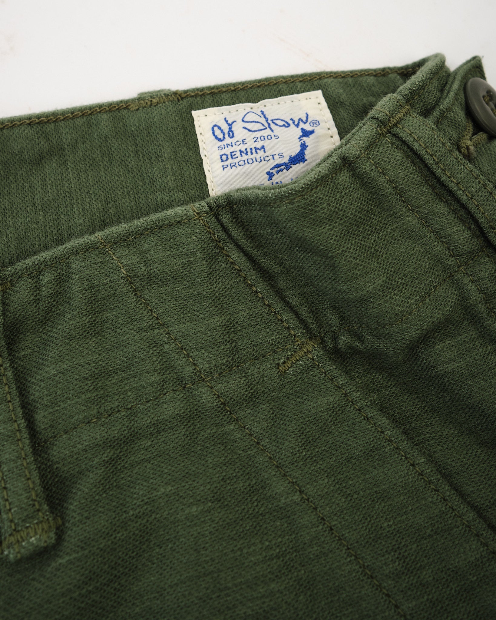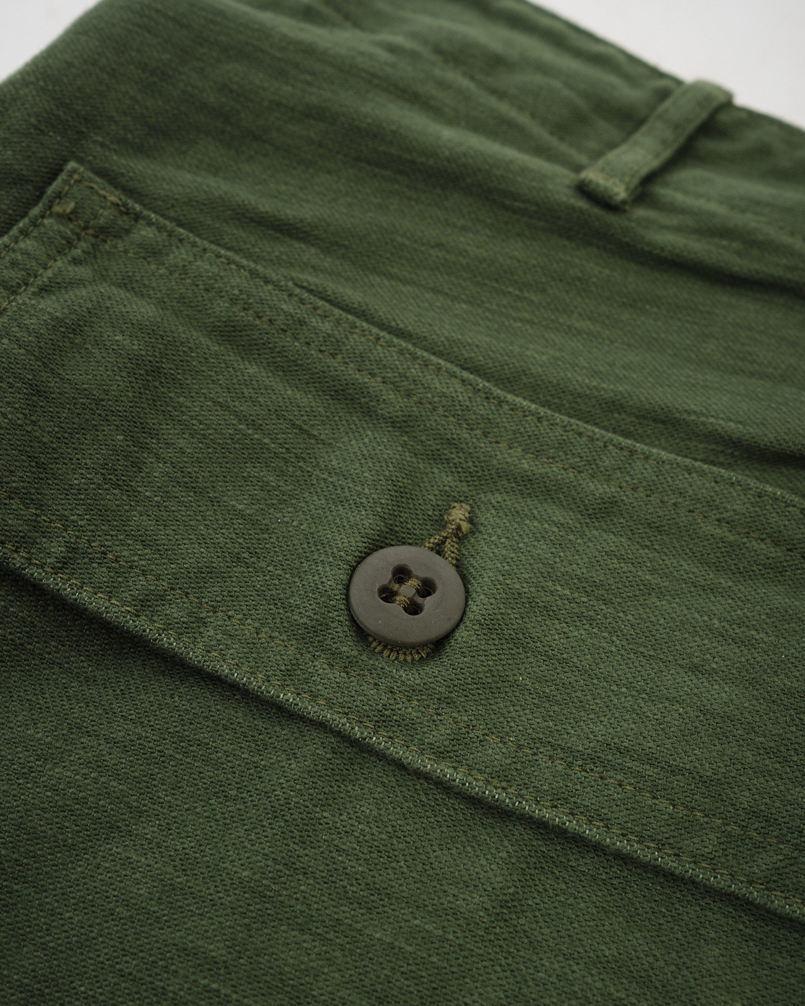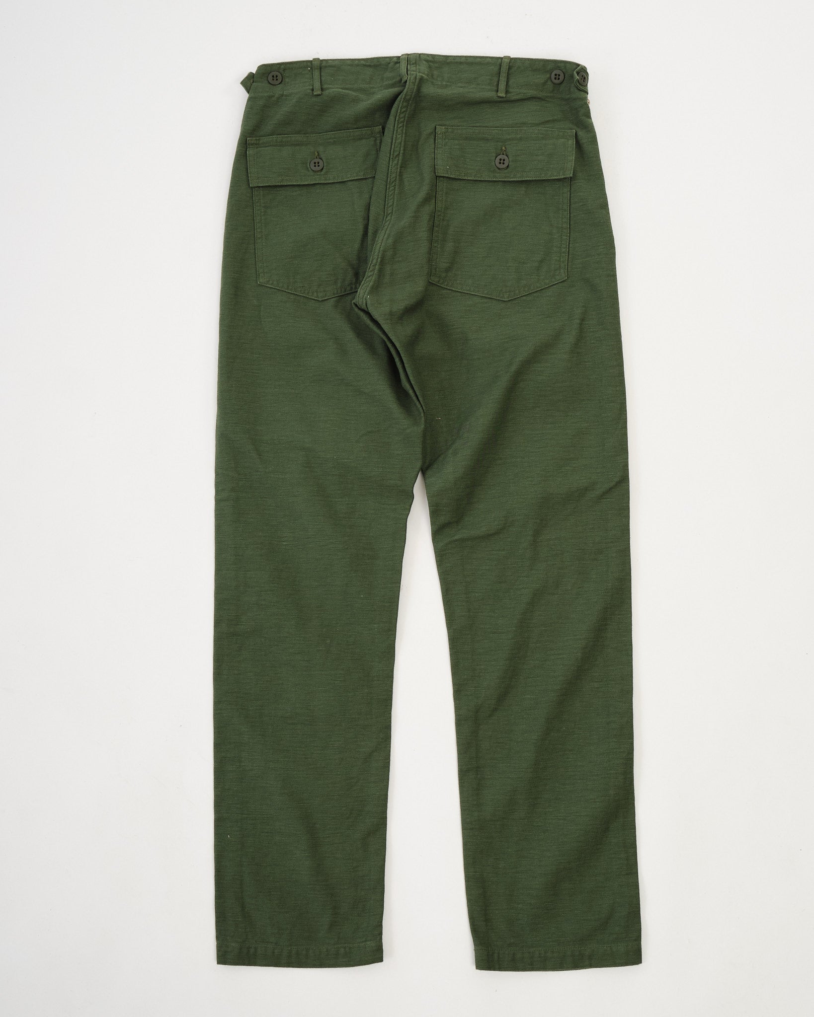 Erleben Sie den zeitlosen Charme von neu erfundenem Vintage mit den orSlow Slim Fit Fatigue Pants in einem Grünton. Mit viel Liebe zum Detail in Japan aus Reverse-Satin gefertigt, zollen diese Hosen dem klassischen Militärdesign Tribut. Hergestellt aus 100% strapazierfähigem Baumwolltwill, verbinden sie utilitaristische Elemente mit einem Hauch von Modernität. Erwarten Sie Seitentaschen, einen mit Laschen geschnürten Bund und eine schlanke Passform, die eine zeitgemäße Silhouette unterstreicht. Ob kombiniert mit einer verblassten Jeansjacke oder einem gemütlichen Wollpullover, diese Hosen strahlen einen Stil aus, gepaart mit unübertroffener Bequemlichkeit.