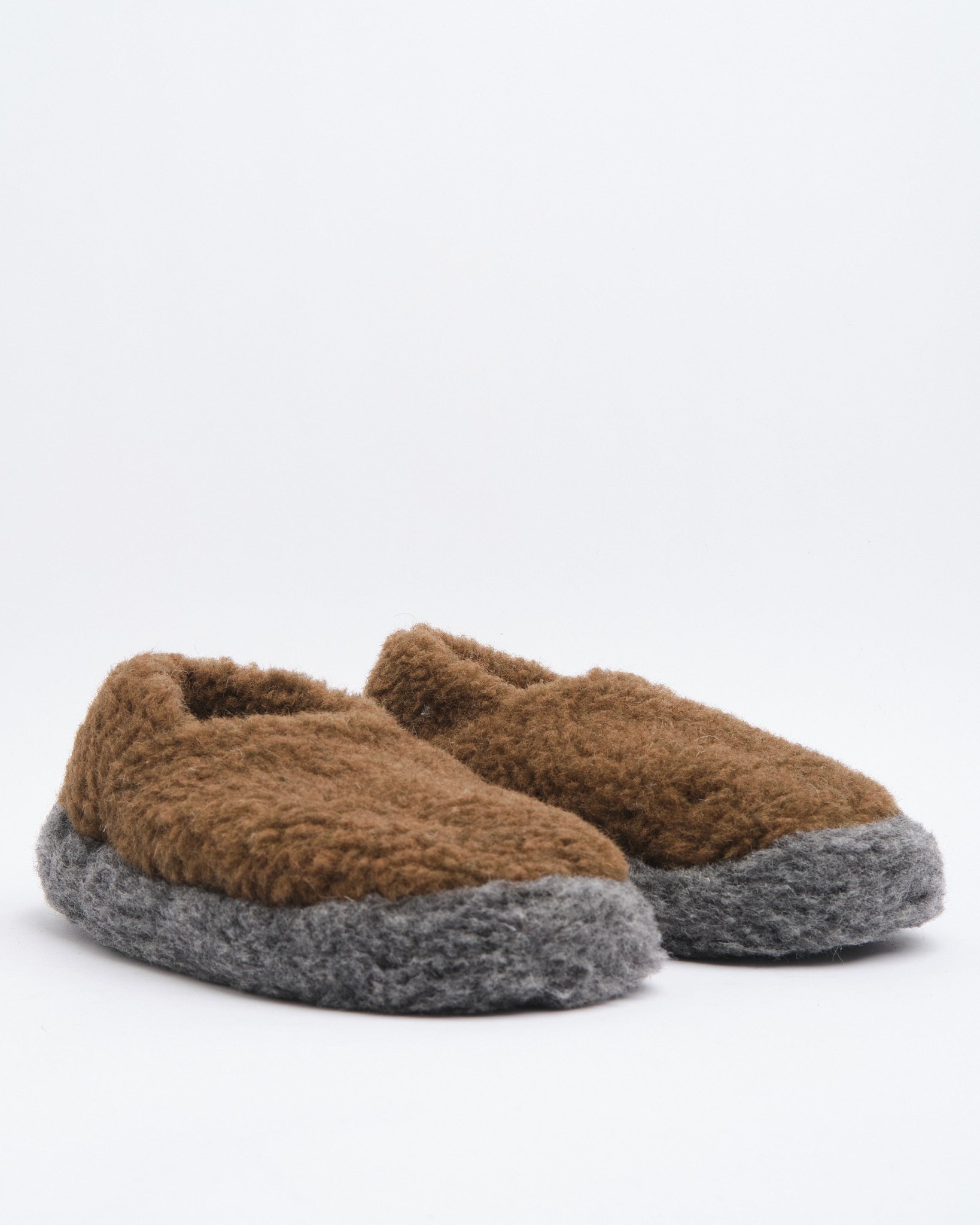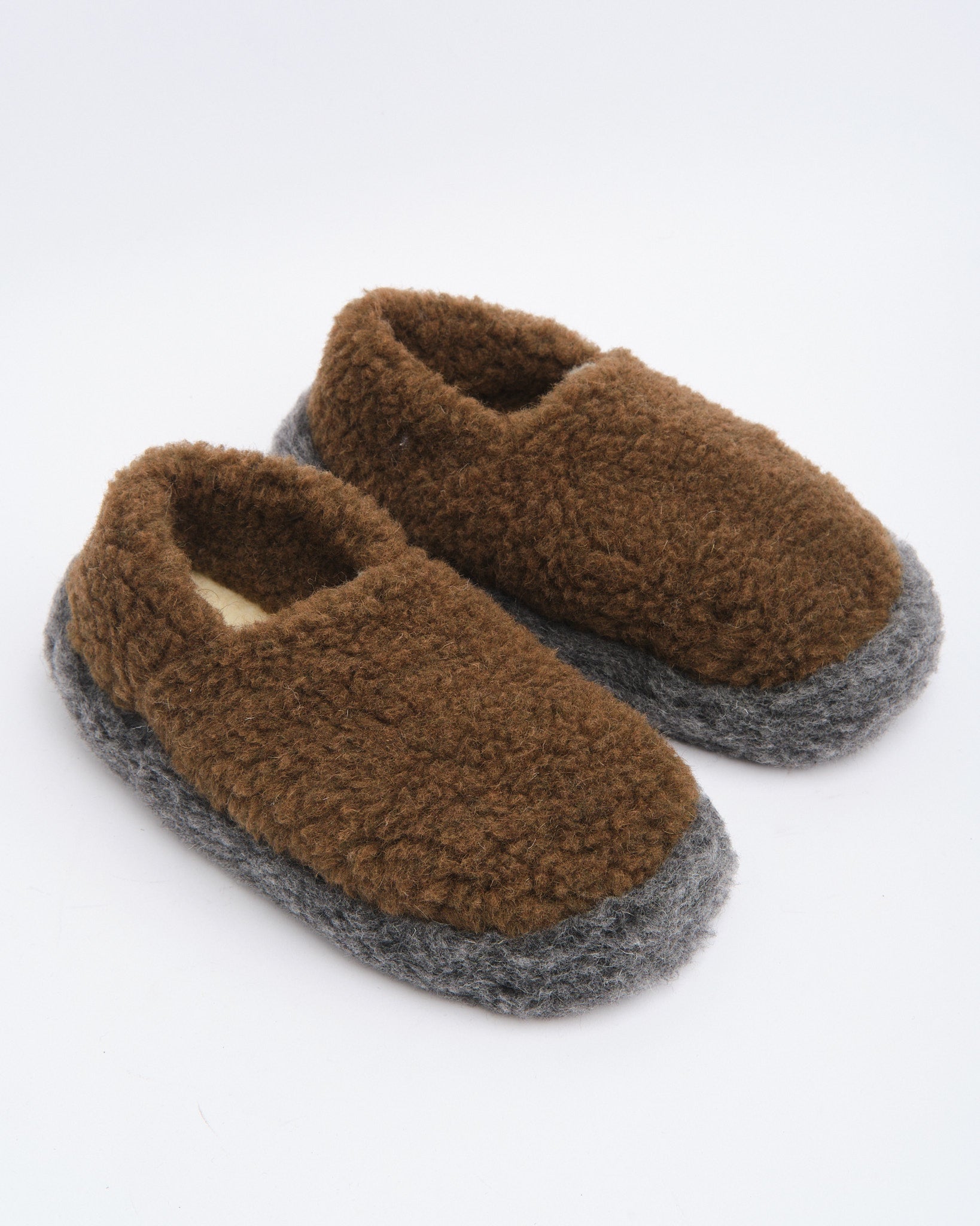 Die Erwachsenen-Sibirischen Hausschuhe in Mittelbraun von Coldbreaker sind für kalte Morgenstunden und gemütliche Nächte gemacht. Hergestellt in Polen aus dickem Wollfilz, isolieren diese Hausschuhe Ihre Füße natürlich, während sie diese gleichzeitig atmen lassen. Das weiche Innenmaterial und die minimalistische Konstruktion bieten reinen Komfort, während die robuste Außensohle Traktion im Haus bietet. Entworfen, um einfach, funktional und außergewöhnlich warm zu sein, sind sie alles, was Sie von einem Winterschuh brauchen – keine Schnörkel, nur natürliche Leichtigkeit.