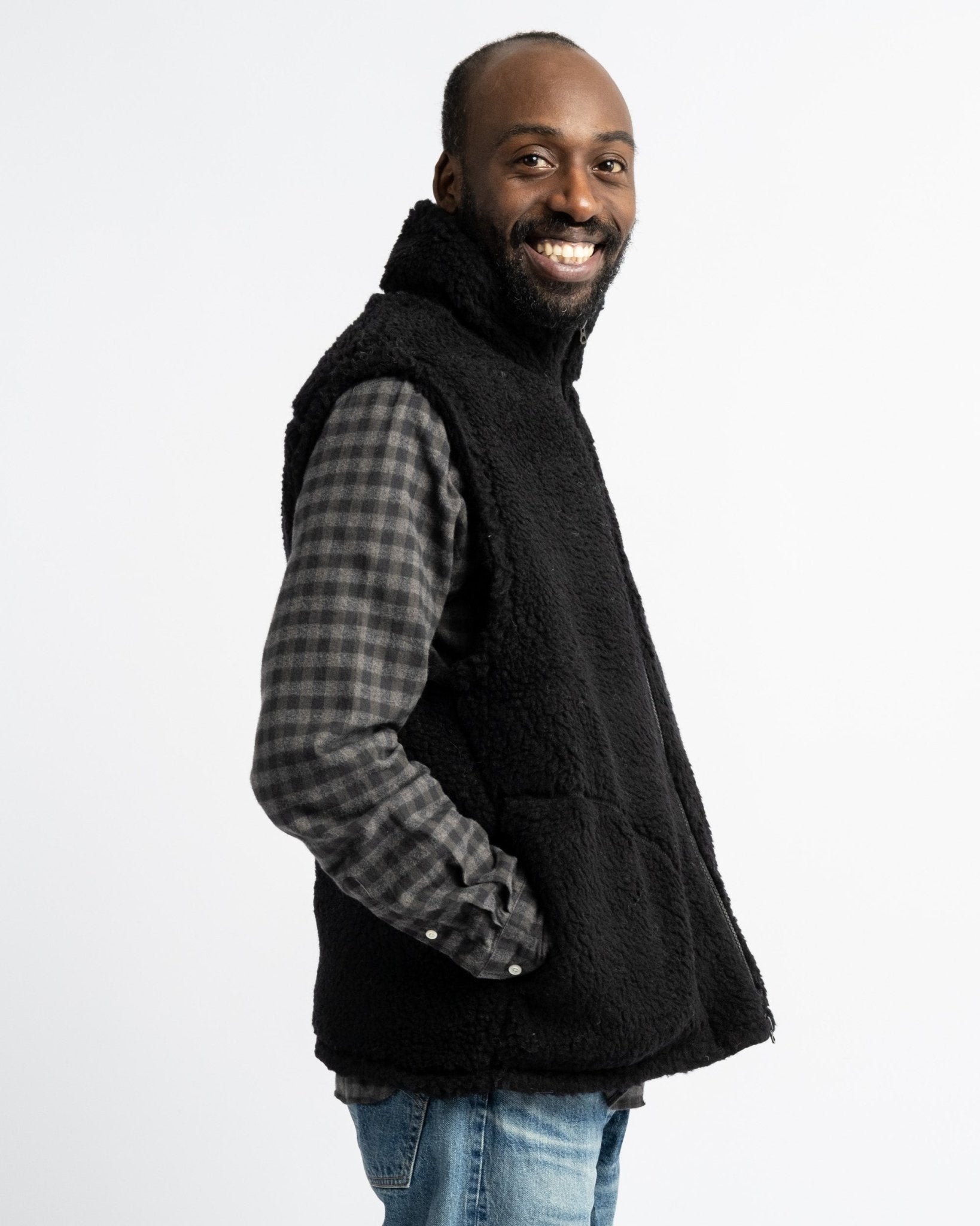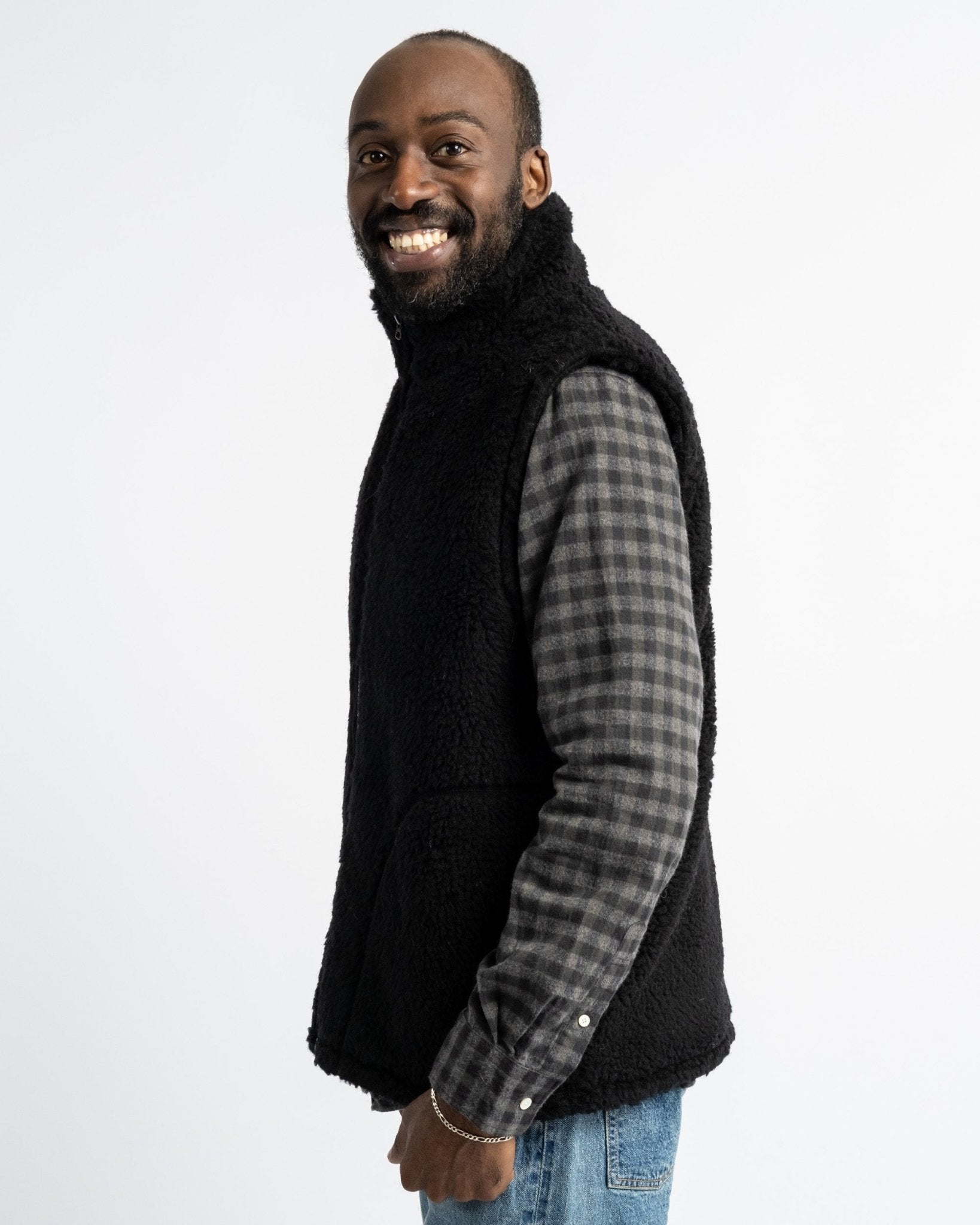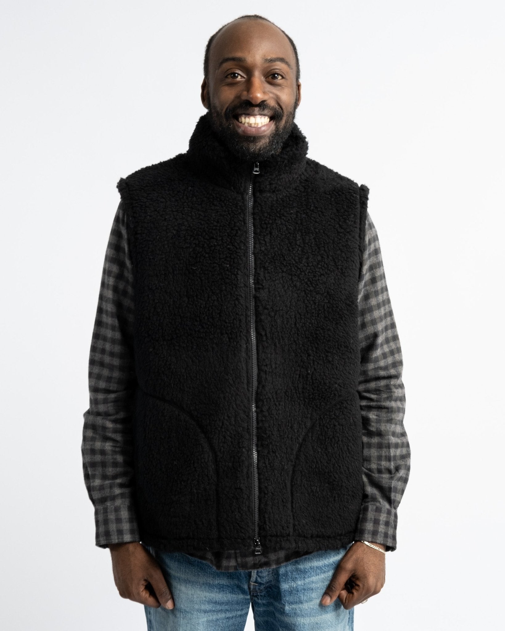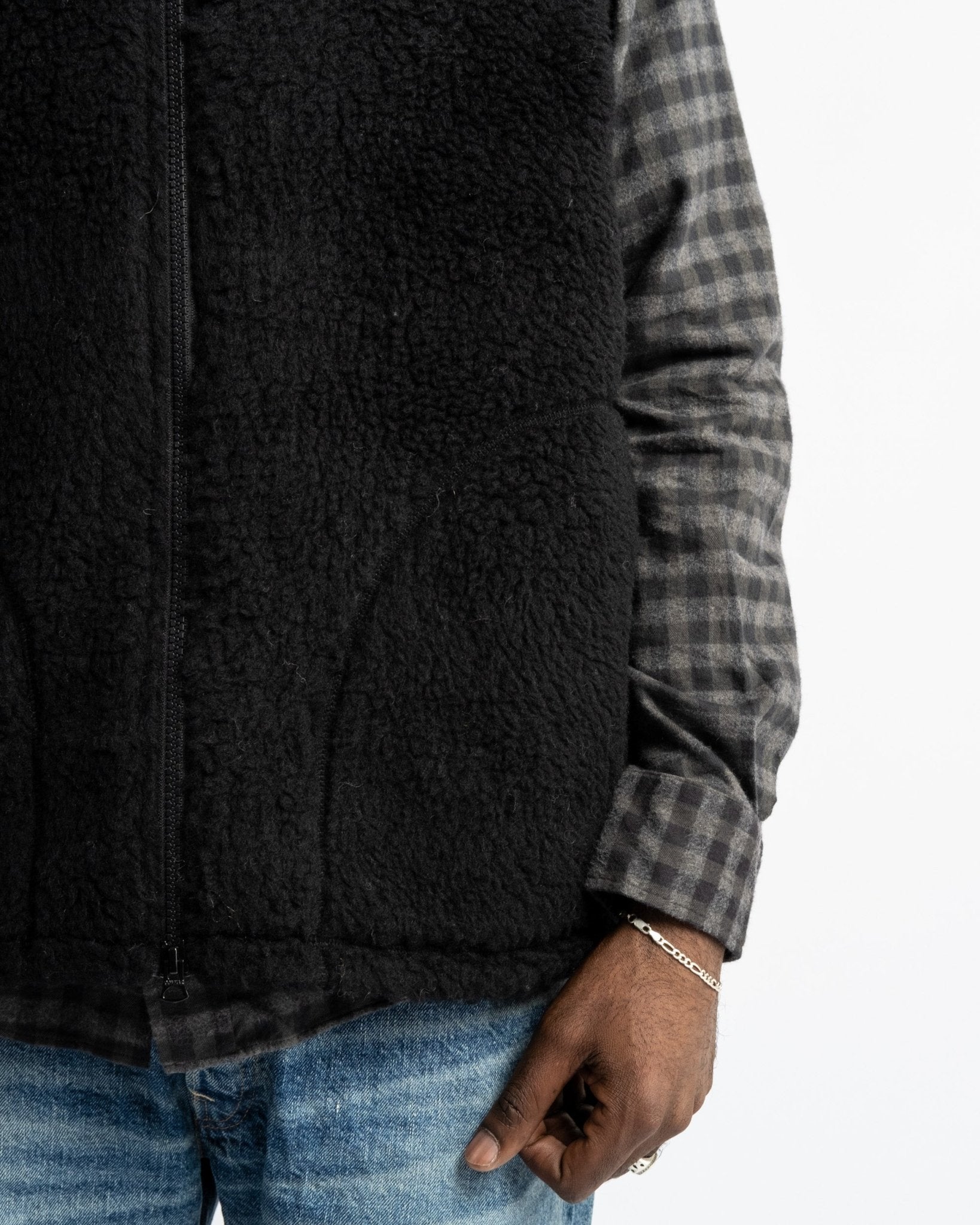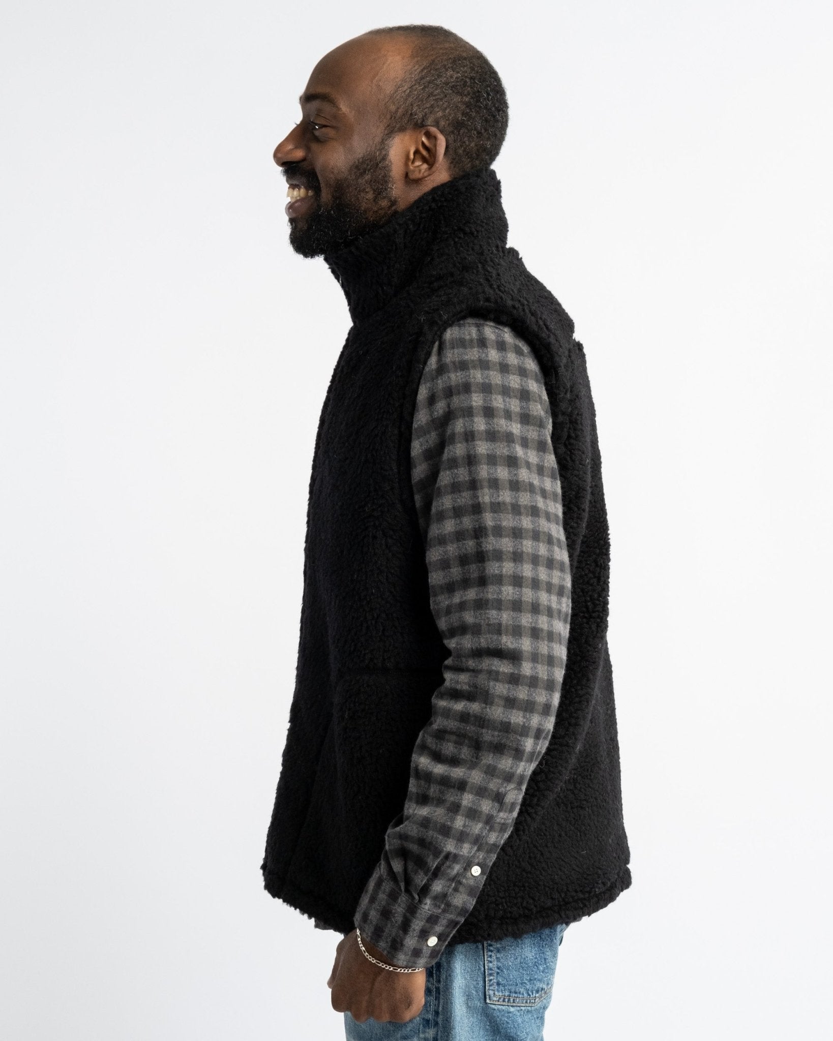 Standkragen Zip Weste Boa Schwarz 19 von Beams+. Super gemütliche Fleece-Stil Weste aus einer Wolle und Nylon Mischung, garantiert, dass sie gute Wärme gibt. Zwei Seitentaschen und ein Zwei-Wege-Reißverschluss.
