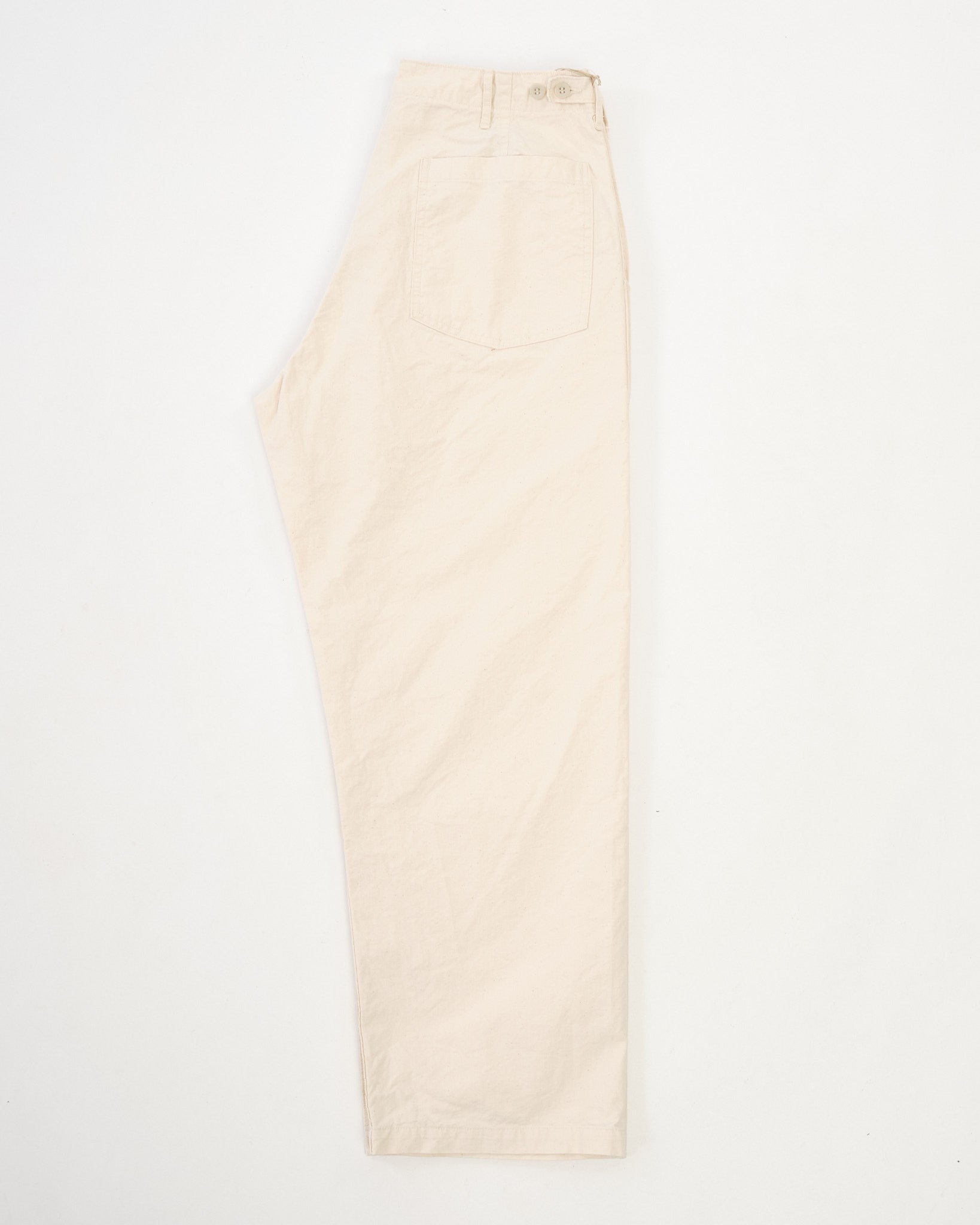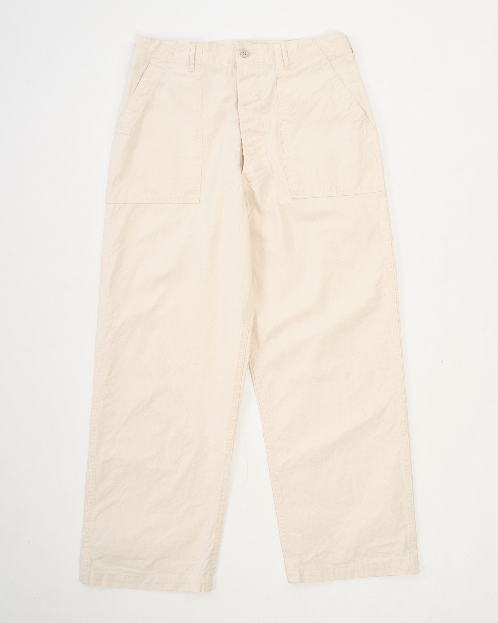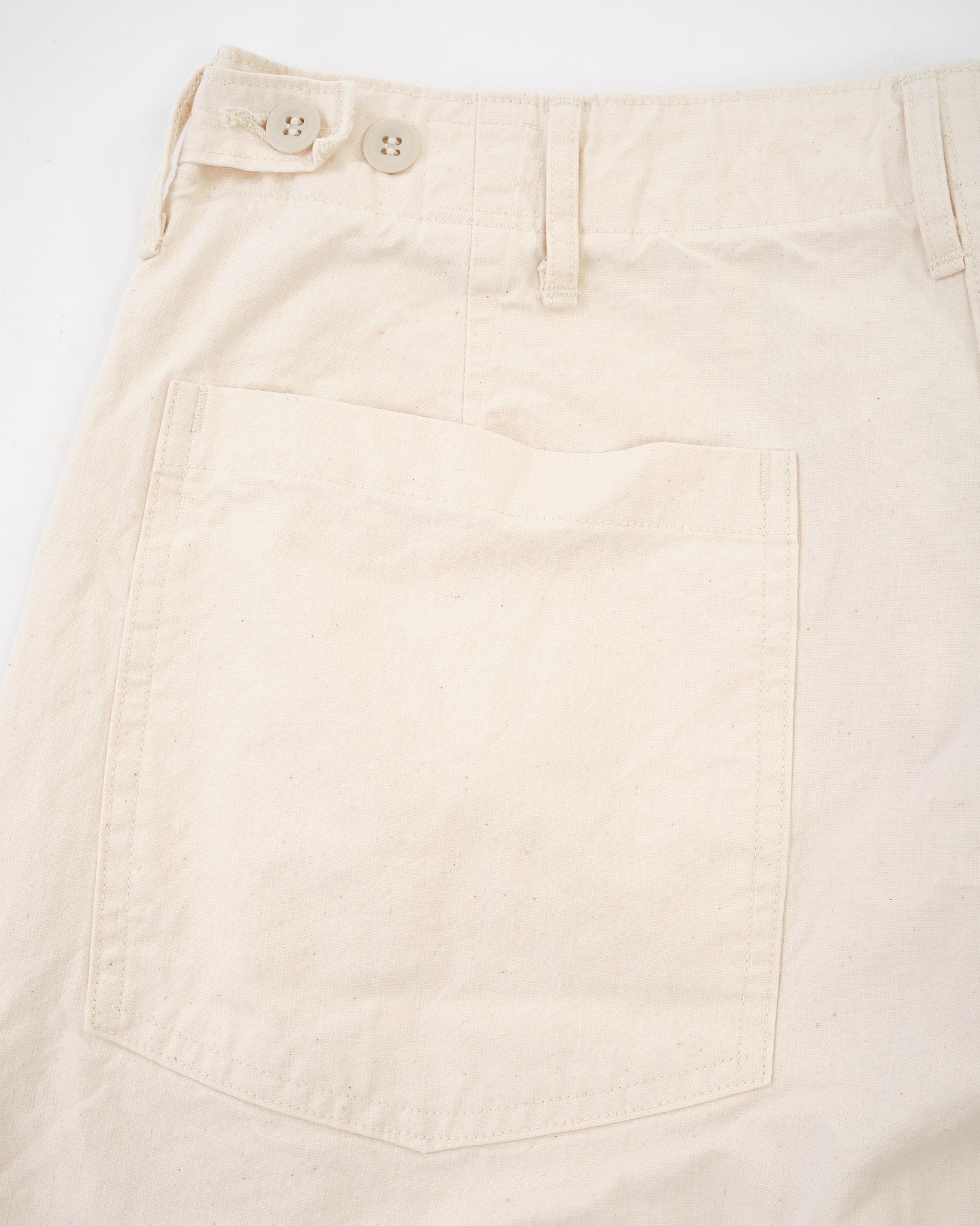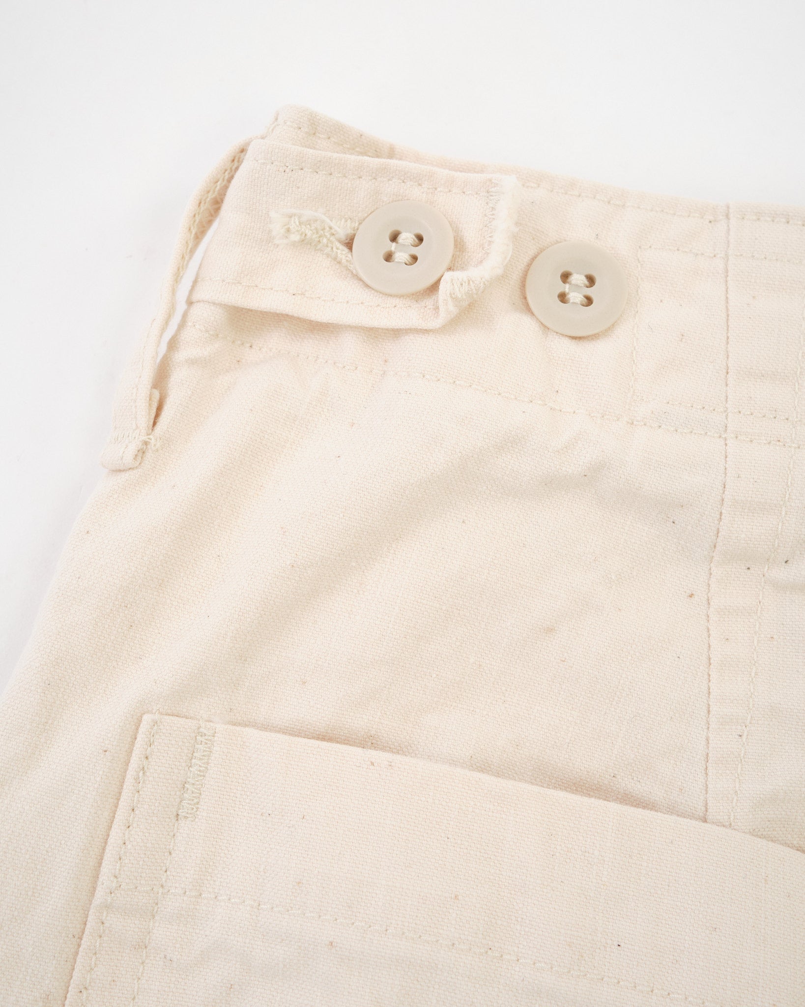 Cut in a relaxed fit, they feature a straight leg and signature fatigue pockets, staying true to their military origins. The ecru colour highlights the natural character of the cotton, while the slub texture adds depth without feeling heavy.