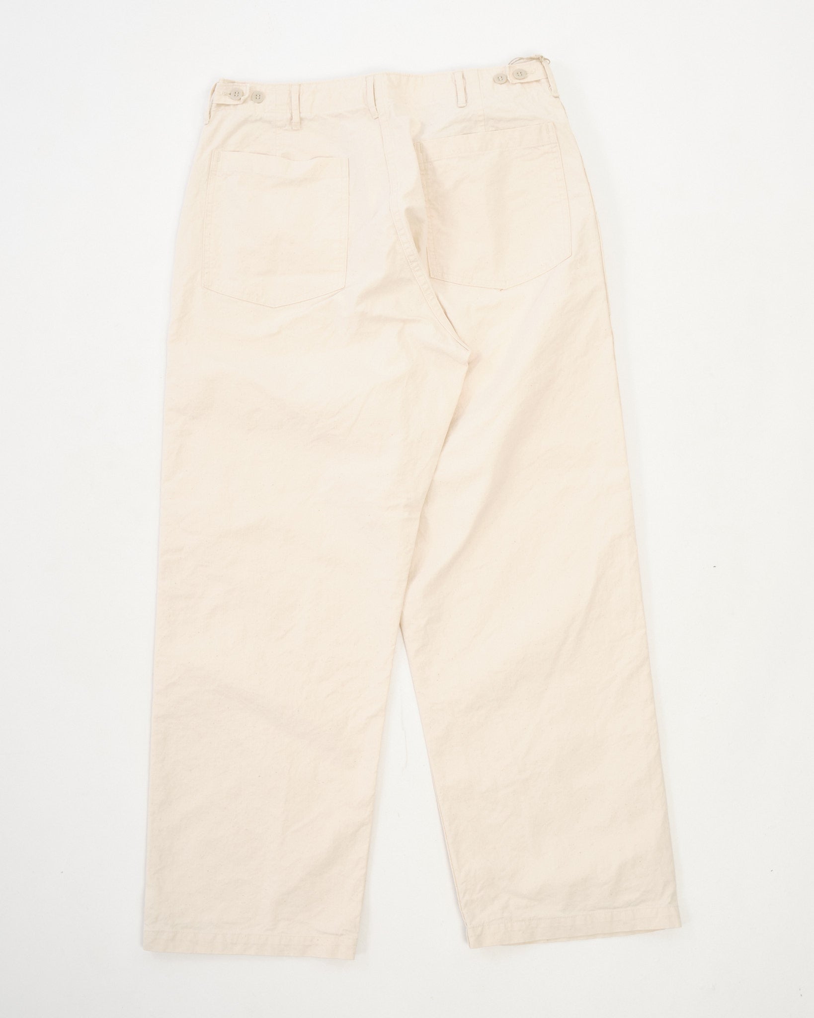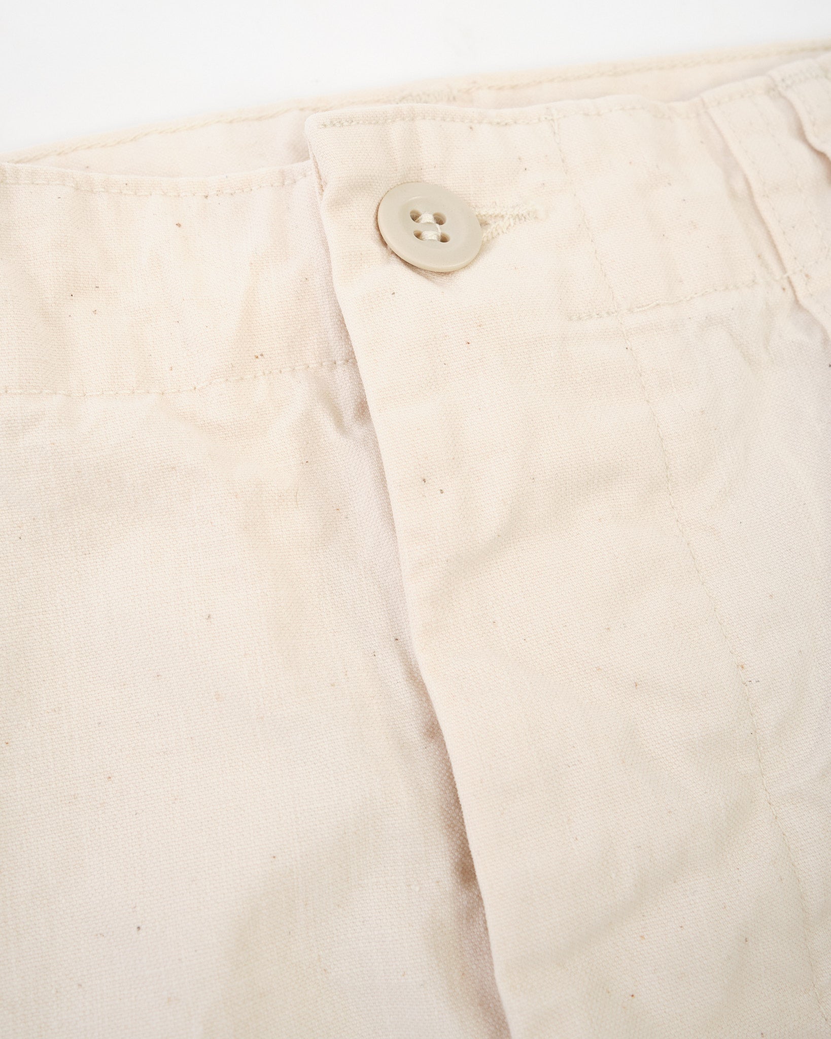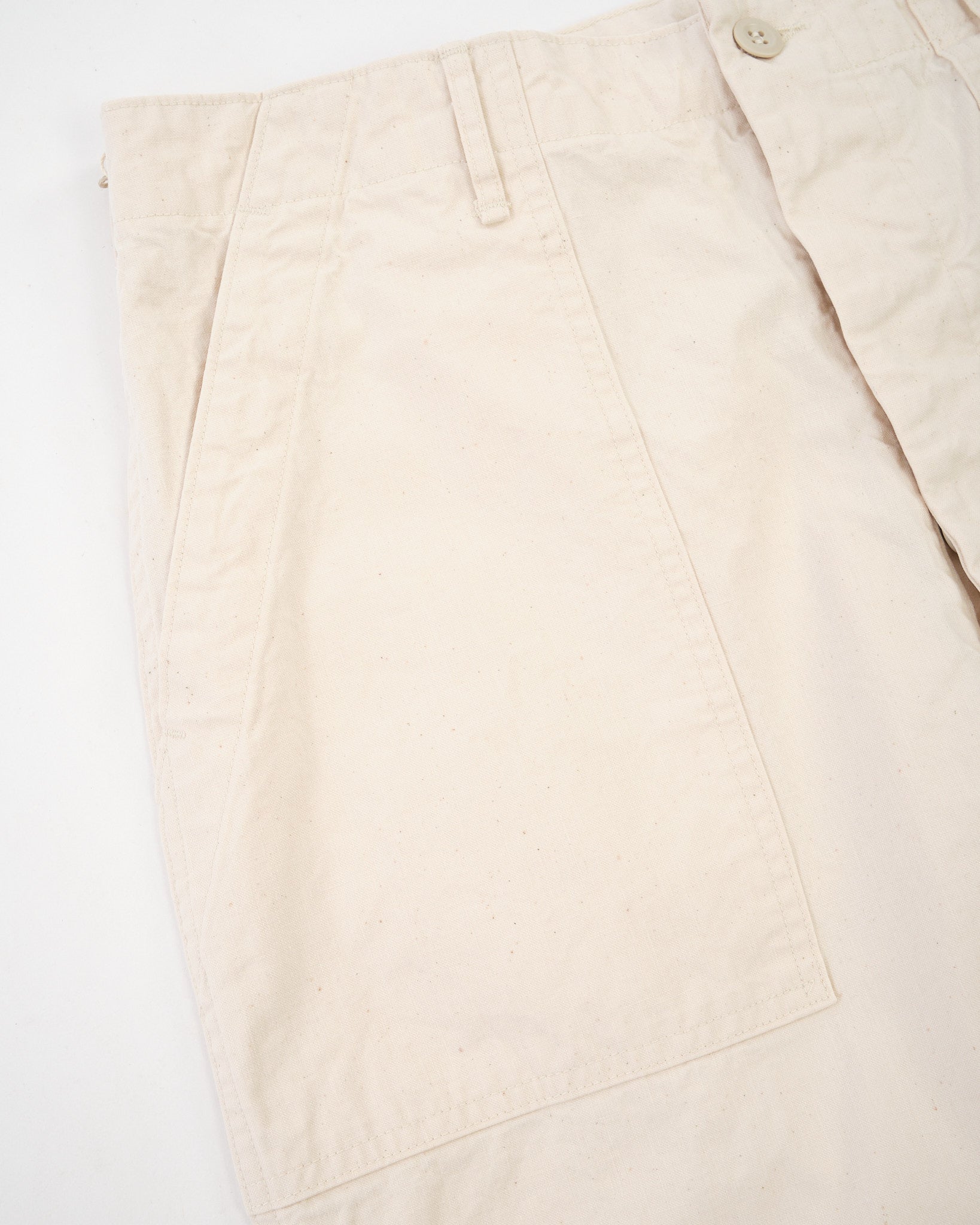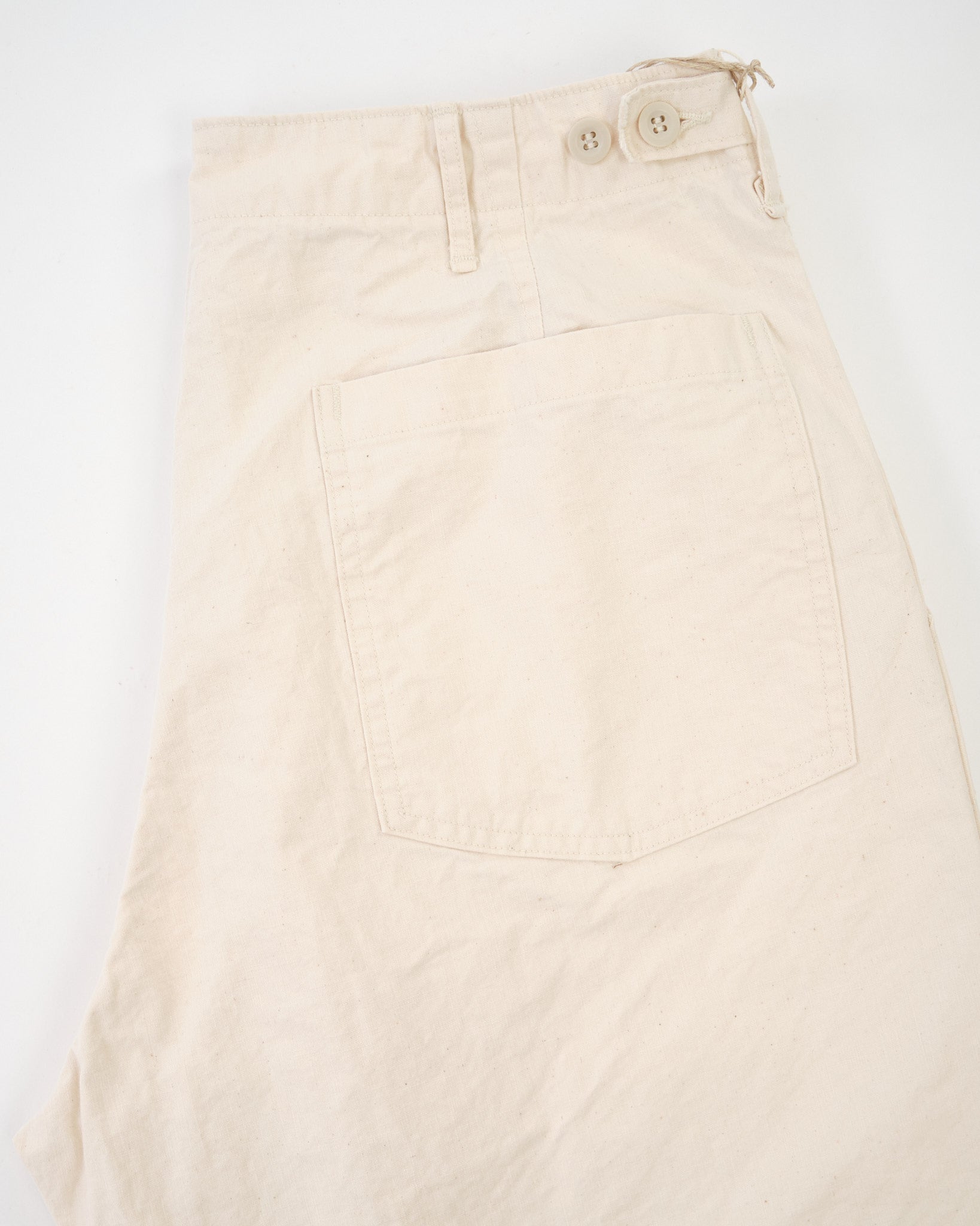 Cut in a relaxed fit, they feature a straight leg and signature fatigue pockets, staying true to their military origins. The ecru colour highlights the natural character of the cotton, while the slub texture adds depth without feeling heavy.