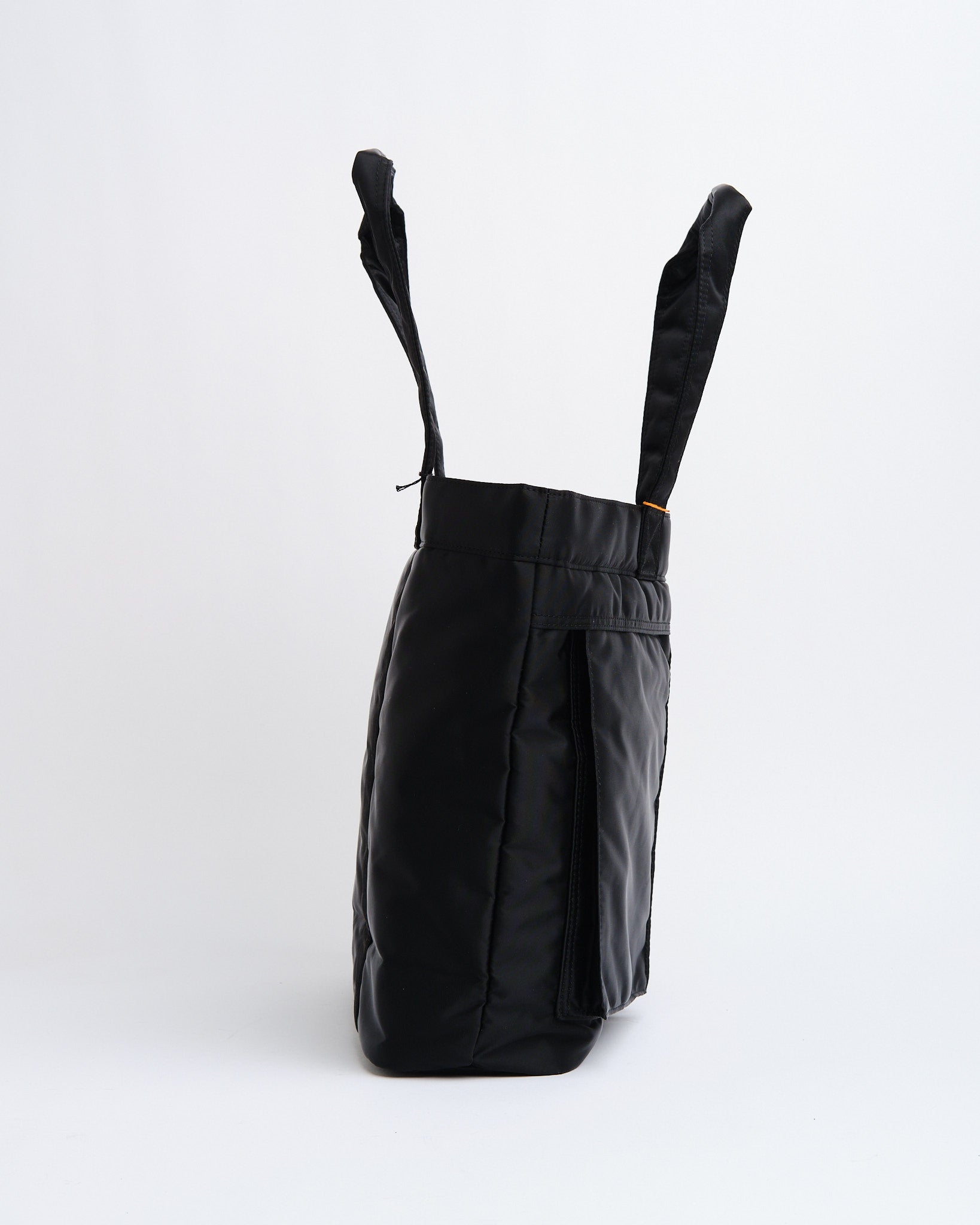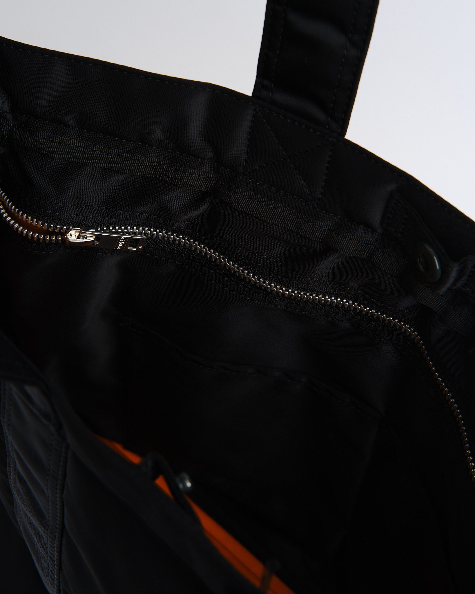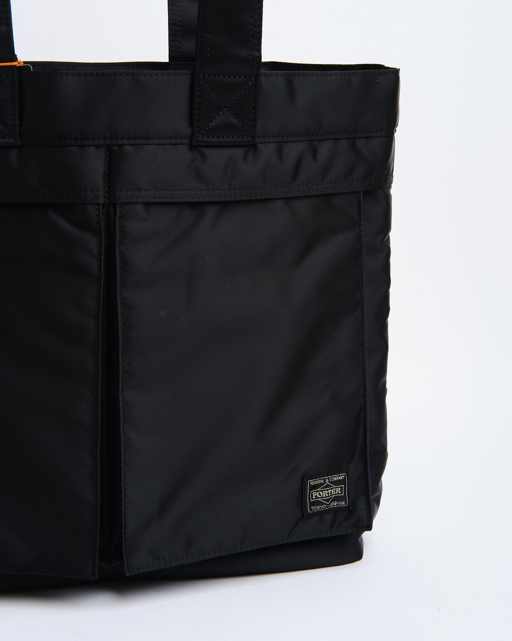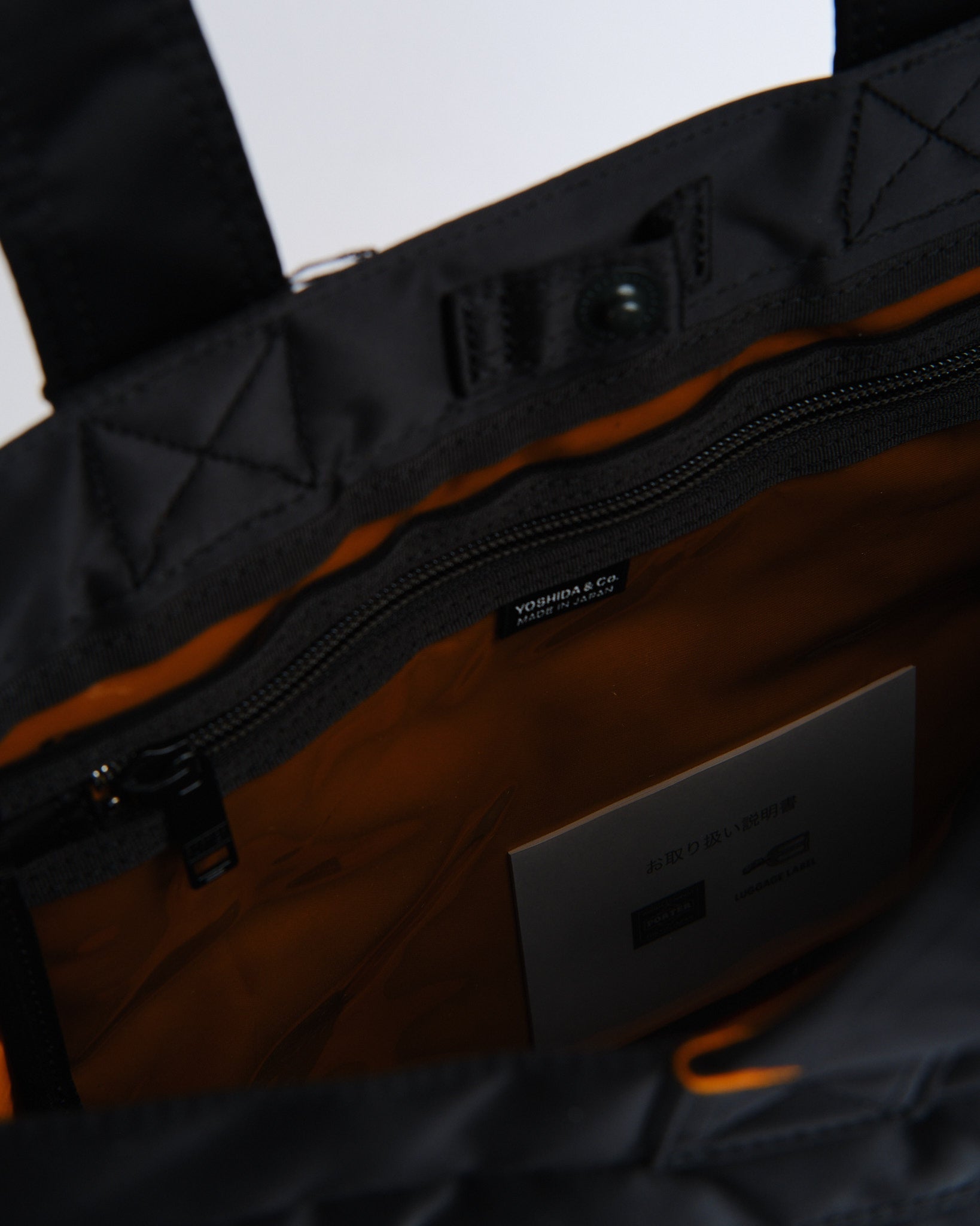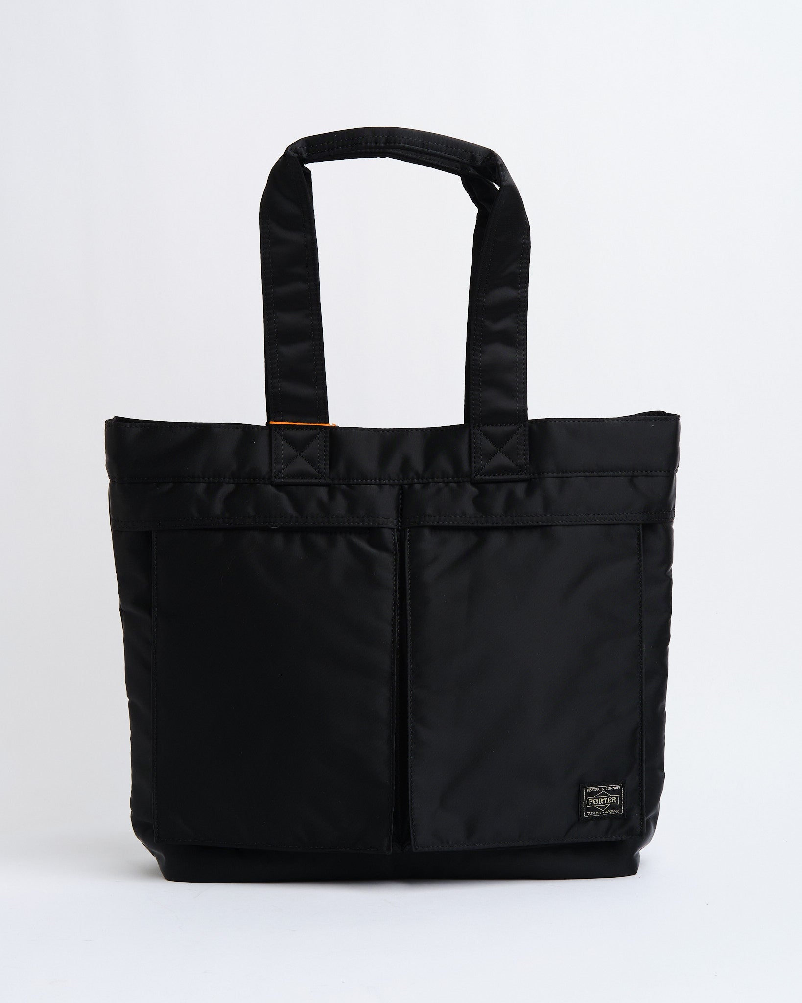 Wir präsentieren die Black PORTER YOSHIDA TANKER TOTE BAG, ein wahres Zeugnis der exquisiten Handwerkskunst Japans. Inspiriert von der zeitlosen MA 1 Jacke, vereint die Tanker-Serie Stil mit Funktionalität. Diese Tote Bag besticht durch eine dreilagige Konstruktion, die Nylon, Polyesterbaumwolle und Nylon-Taft kombiniert, für eine ansprechende Ästhetik und langanhaltende Haltbarkeit. Sie zeigt ein orangefarbenes Innenfutter, zwei praktische Griffe und mehrere Taschen, die mit Reißverschlüssen oder Druckknöpfen gesichert sind. Trotz ihres Aussehens bietet diese Tote Bag reichlich Funktionalität mit einer Innentasche mit Reißverschluss, einem klaren Fach und markanten Vordertaschen. Die verlängerten Griffe erleichtern das Tragen über der Schulter – perfekt für den Einsatz und bequem dimensioniert, um A4-Dokumente aufzunehmen.