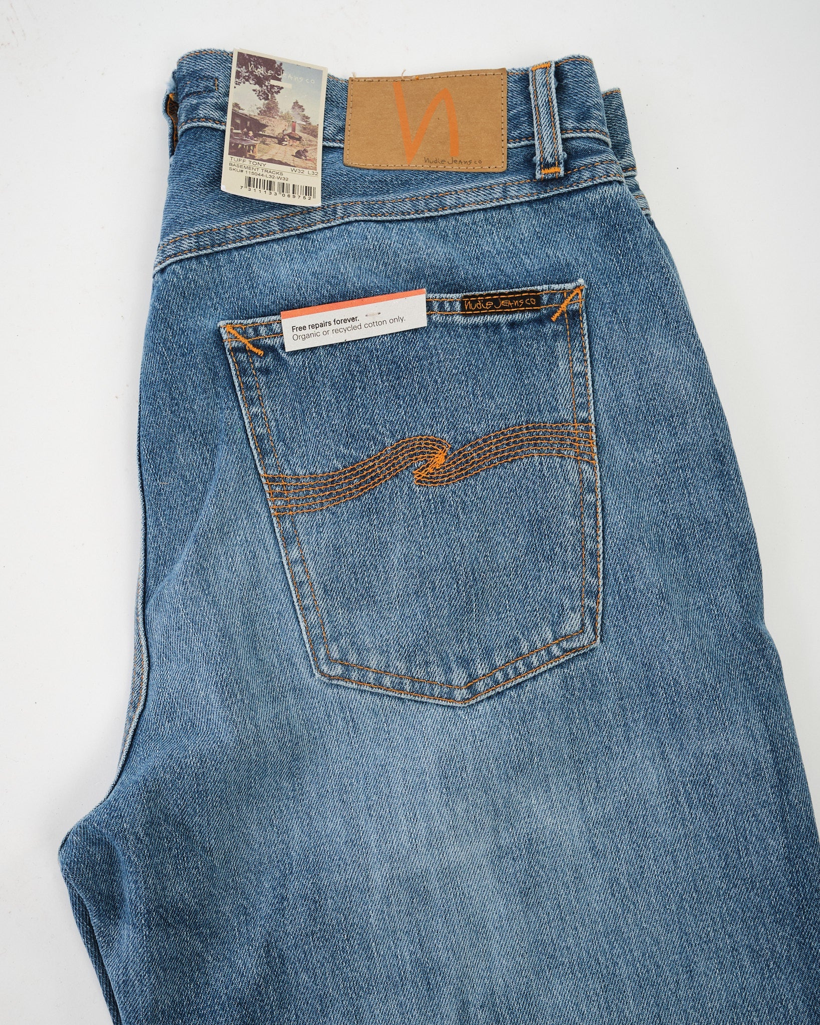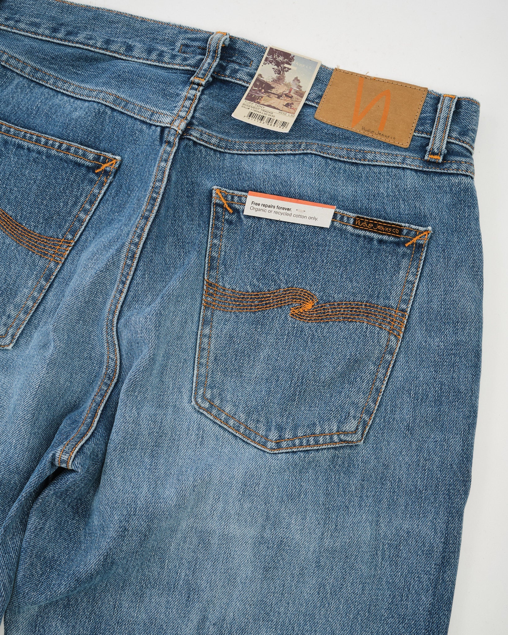 Die NUDIE JEANS CO. TUFF TONY BASEMENT TRACKS sind eine meisterhafte Nachbildung von authentischen Trage- und Ausbleichmustern, die man an einem gut getragenen Paar Nudie Jeans findet. Mit einer fortschrittlichen Reproduktionsmethode wurde jede natürliche Abnutzung, Ausbleichung und Markierung der Originaljeans akribisch auf dieses neue Paar übertragen.