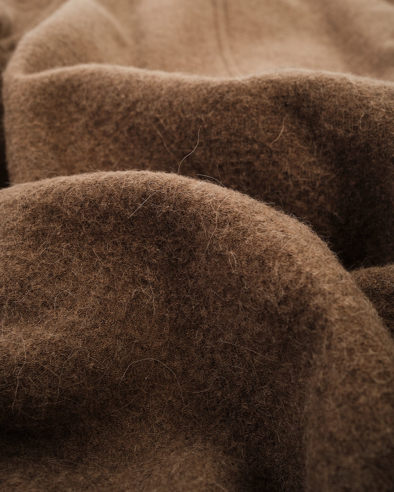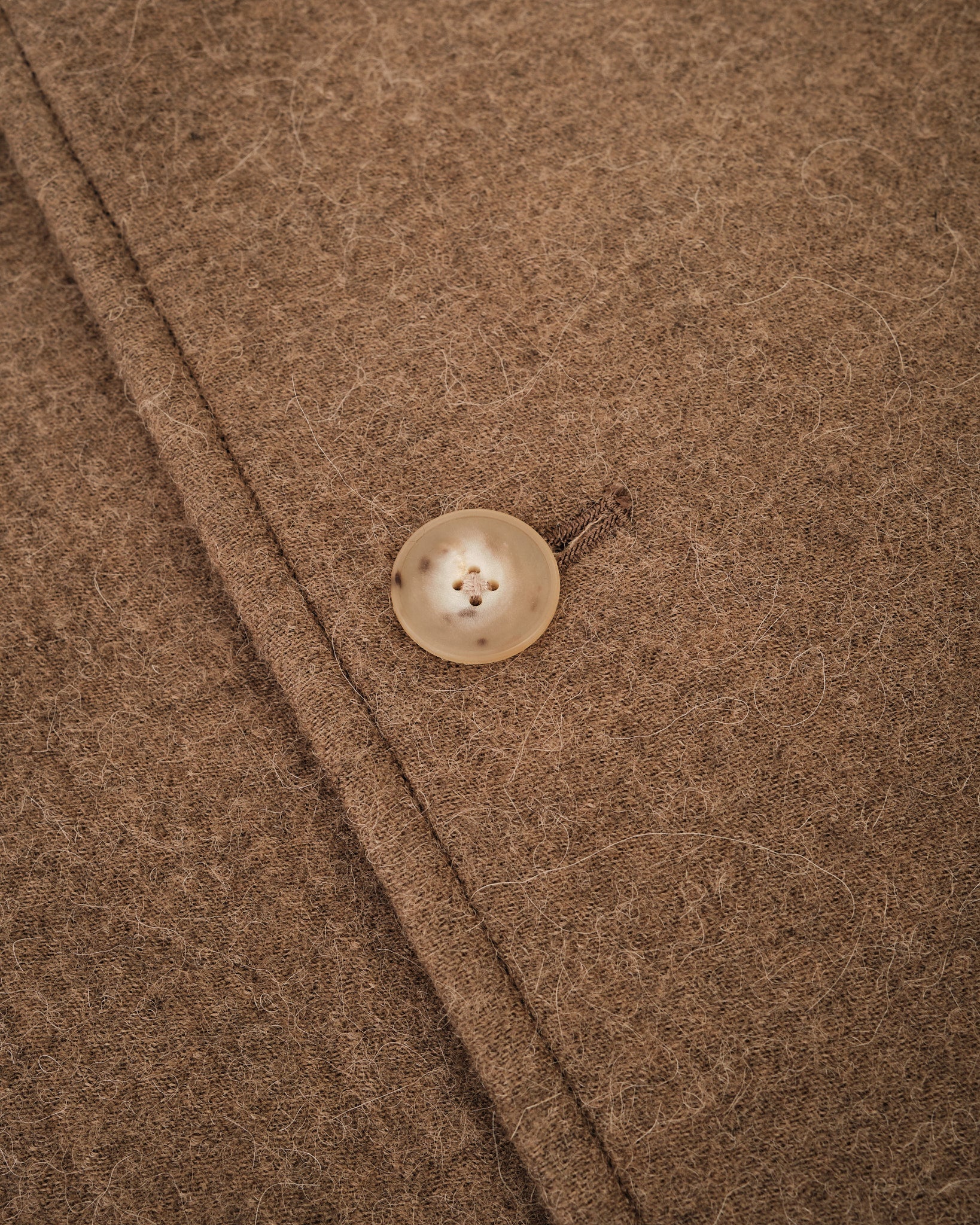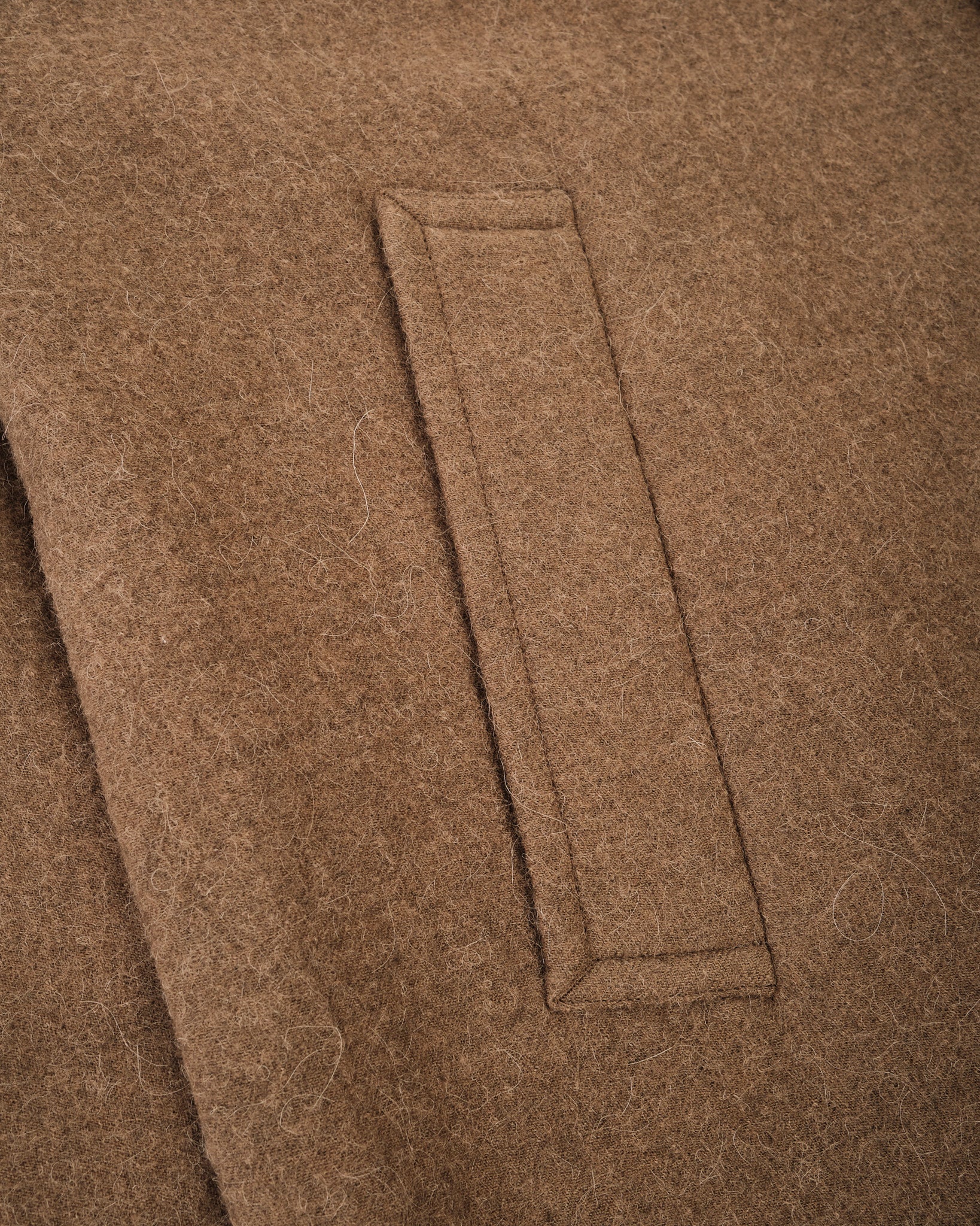 The Umbrella Coat from Kaptain Sunshine is a masterclass in Japanese craftsmanship and refined outerwear design. Made from a luxurious double cloth woven slowly and densely from a warm blend of llama alpaca and merino wool, it offers both softness and structure. The fabric has been carefully felted to add body and texture without excess weight. Fully lined for comfort, this relaxed-fitting coat drapes beautifully while keeping you warm through the colder months. Made in Japan with Kaptain Sunshine’s signature dedication to quality and timeless style.