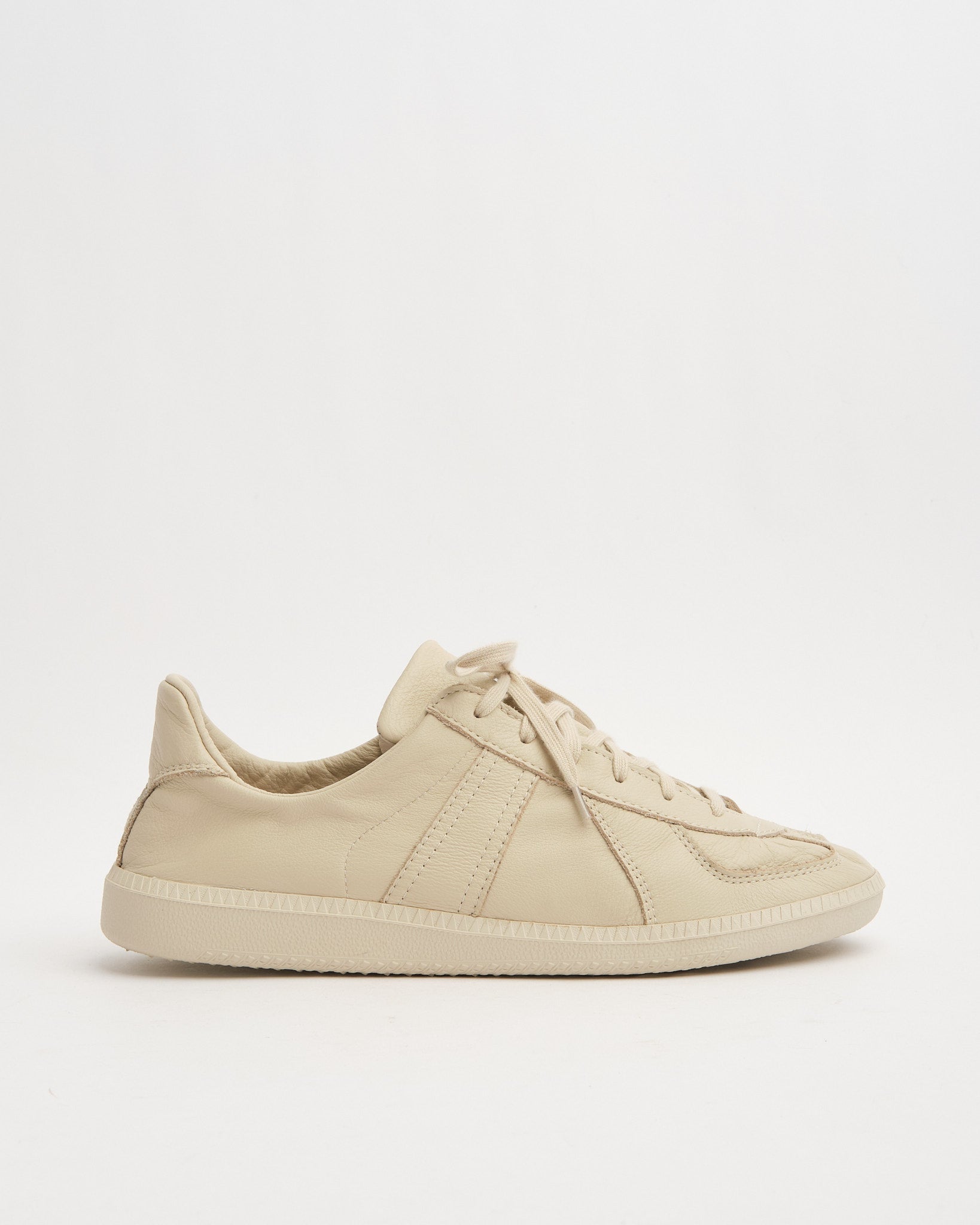 Der ungefütterte KS Trainer PANNA von Kaptain Sunshine ist eine verfeinerte Interpretation des klassischen German Army Trainers, neu bearbeitet mit dem präzisen Ansatz der Marke in Bezug auf Proportion und Material. Unaufdringlich und doch bedacht, ist dies ein Sneaker für diejenigen, die leise Qualität zu schätzen wissen.