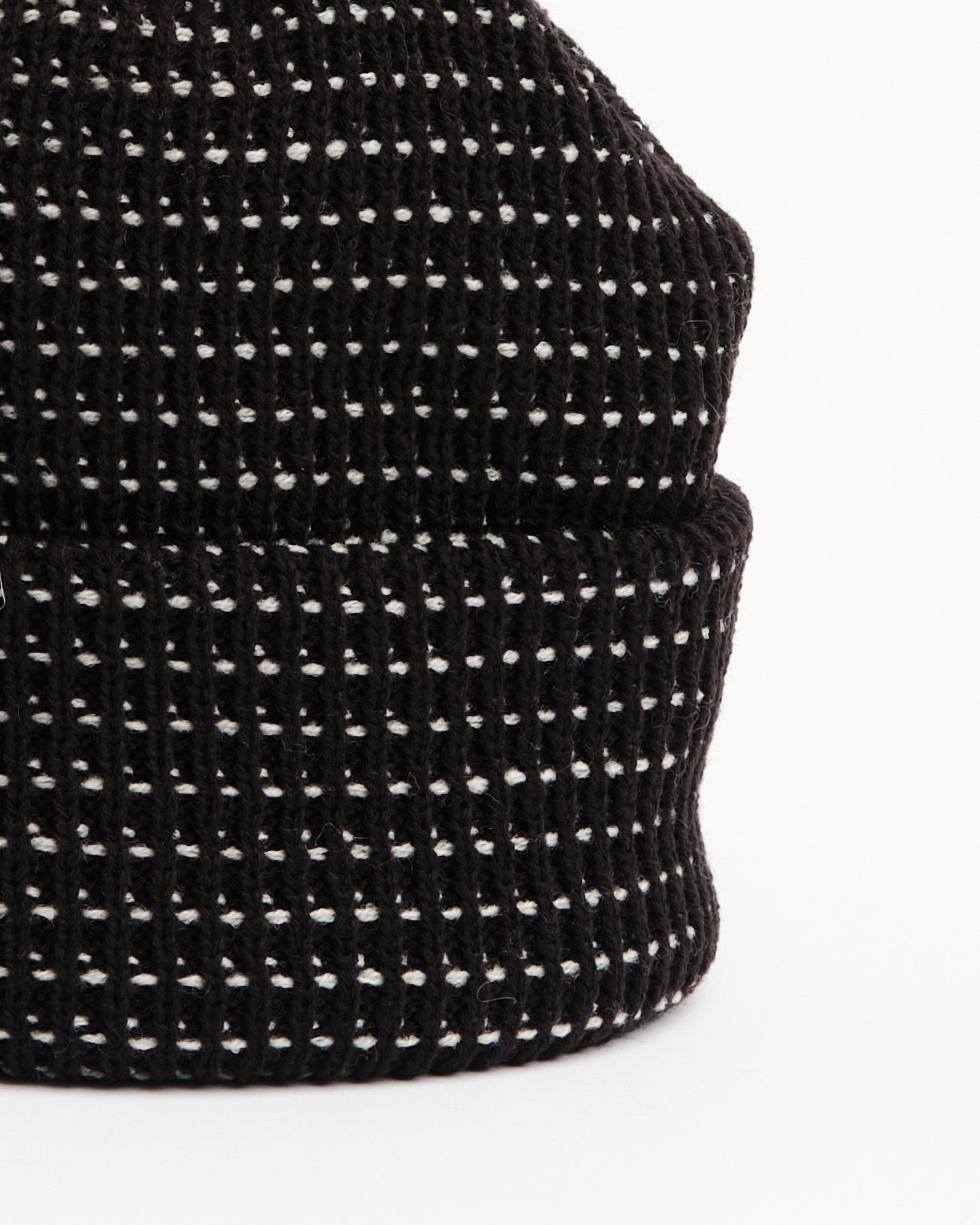 Mach es dir gemütlich mit der Found Feather Waffle Beanie in Schwarz. Der Neuzugang dieser Saison ist aus 100% Baumwollgarn gefertigt, mit einem Kreuzhaarmuster gewebt, das ihm ein einzigartiges Waffel-ähnliches Aussehen verleiht. Ein cremefarbenes Kontrastgarn ist horizontal über das Strickmuster gewebt. Die Beanie hat eine 20cm Krone, die aus einem einzigen Panel besteht, ein superweiches Strickmuster und einen 7cm einfach umgeschlagenen Rand. Außerdem ist sie waschbar. Unisex-Design für alle.