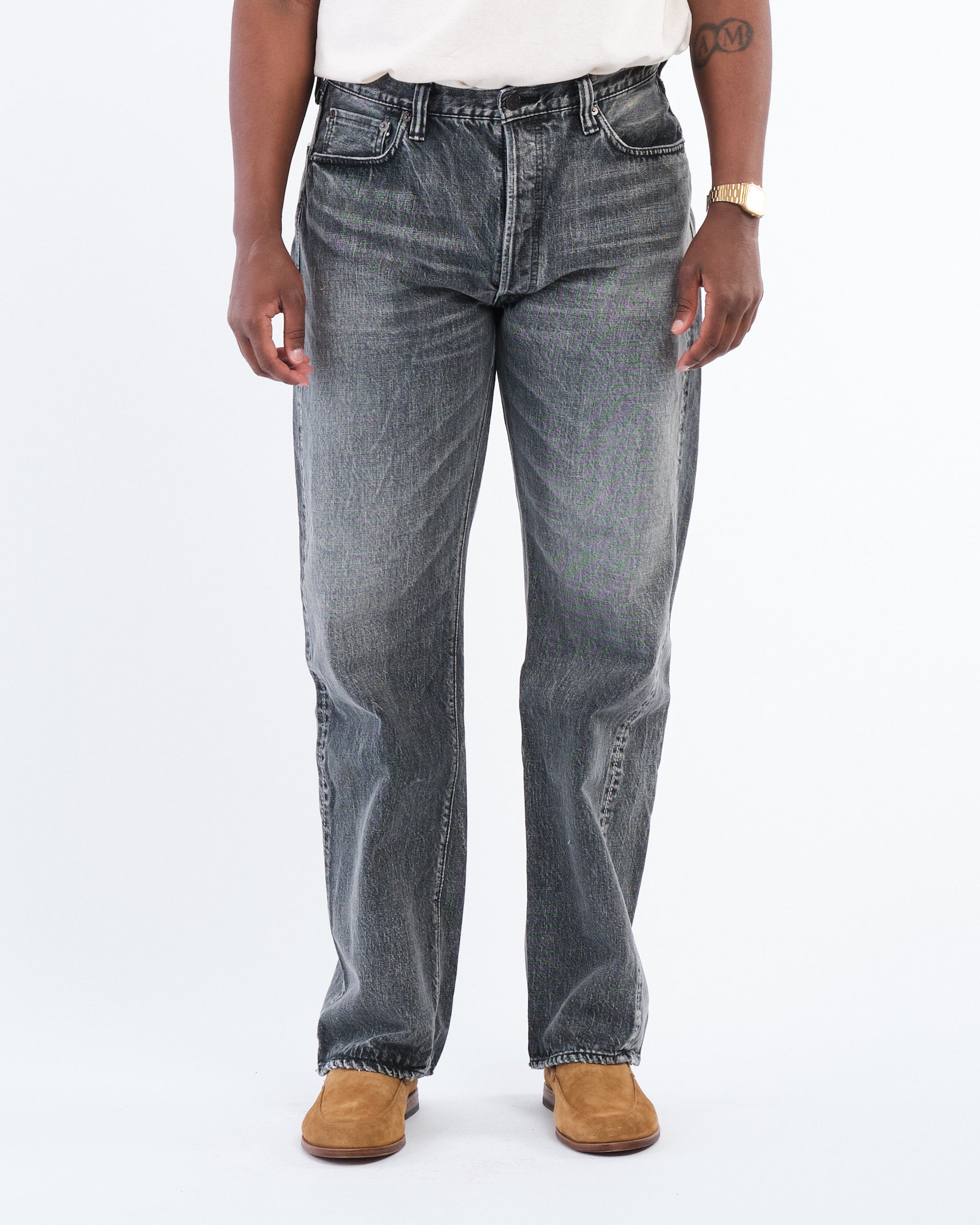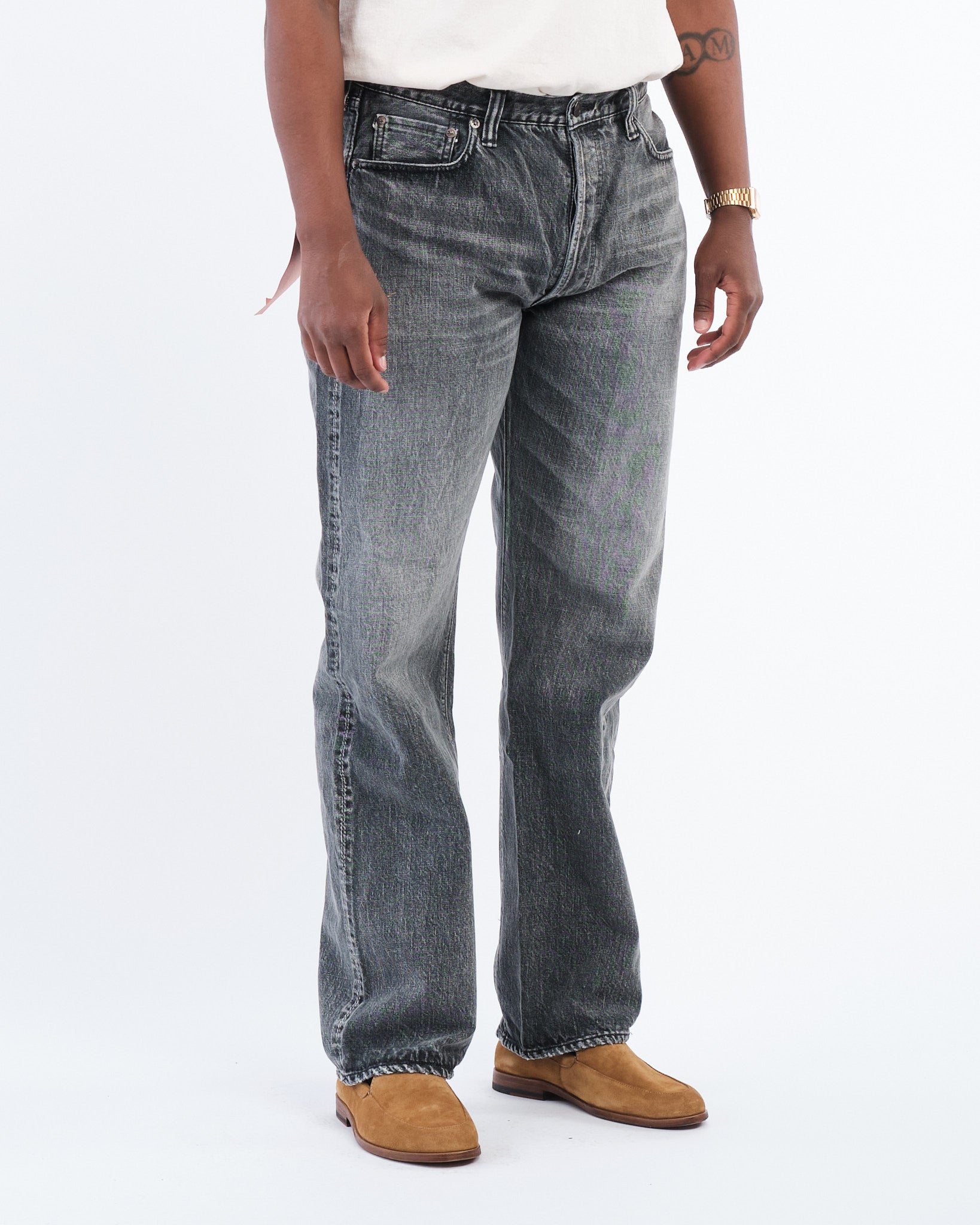 • Unbehandelter, roher Denim, der sich dem Körper des Trägers anpasst